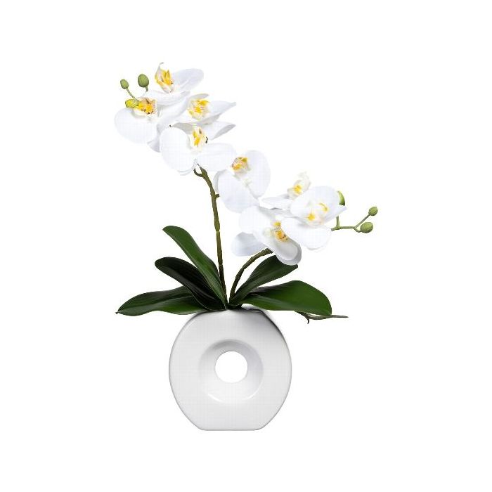 Orquídea Phalaenopsis artificial DRELMOR, jarrón de cerámica, raíces, blanca, 35 cm