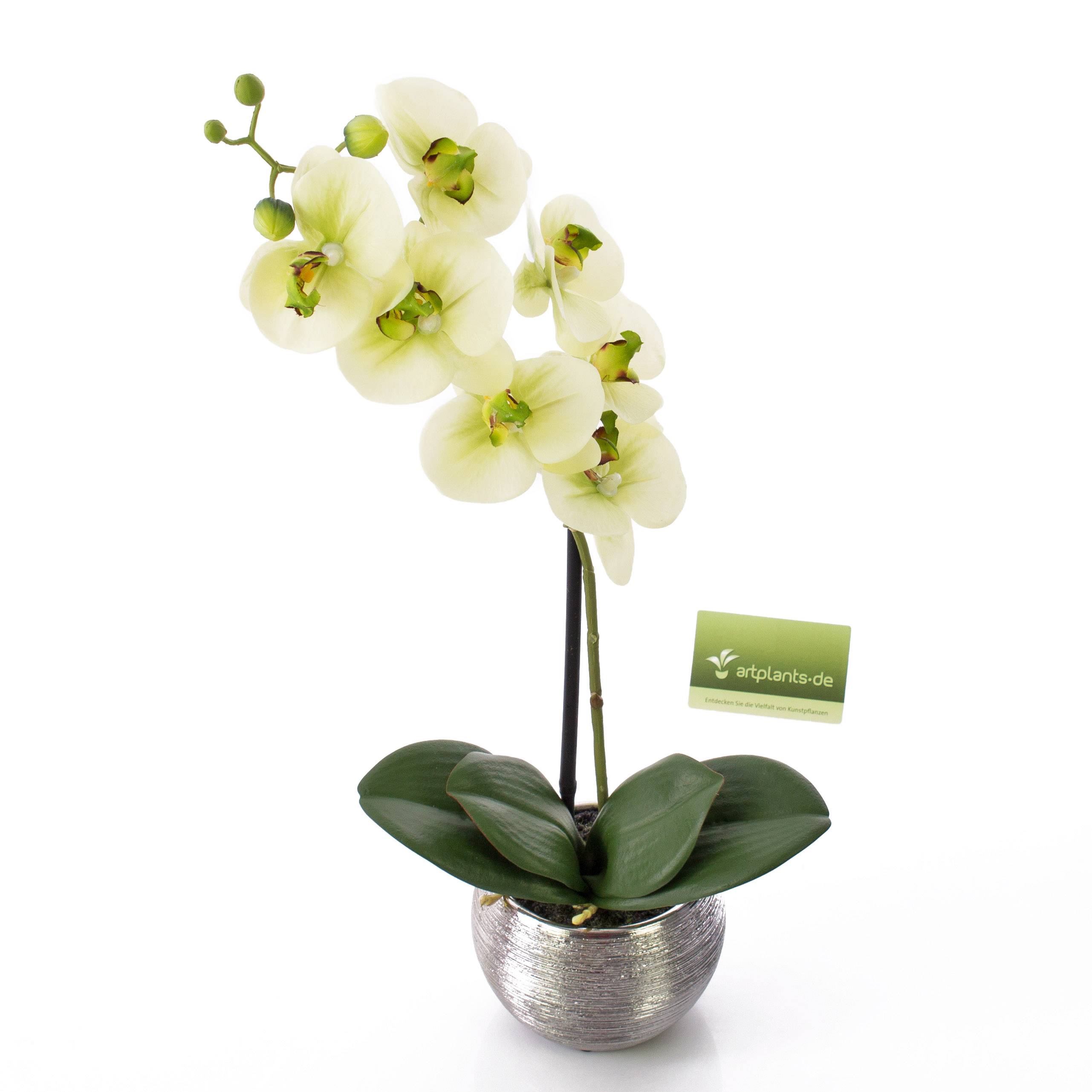 Orquídea Phalaenopsis artificial EMILIA, maceta decorativa, crema-verde, 45cm