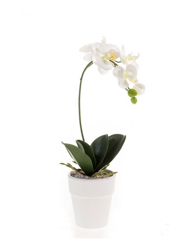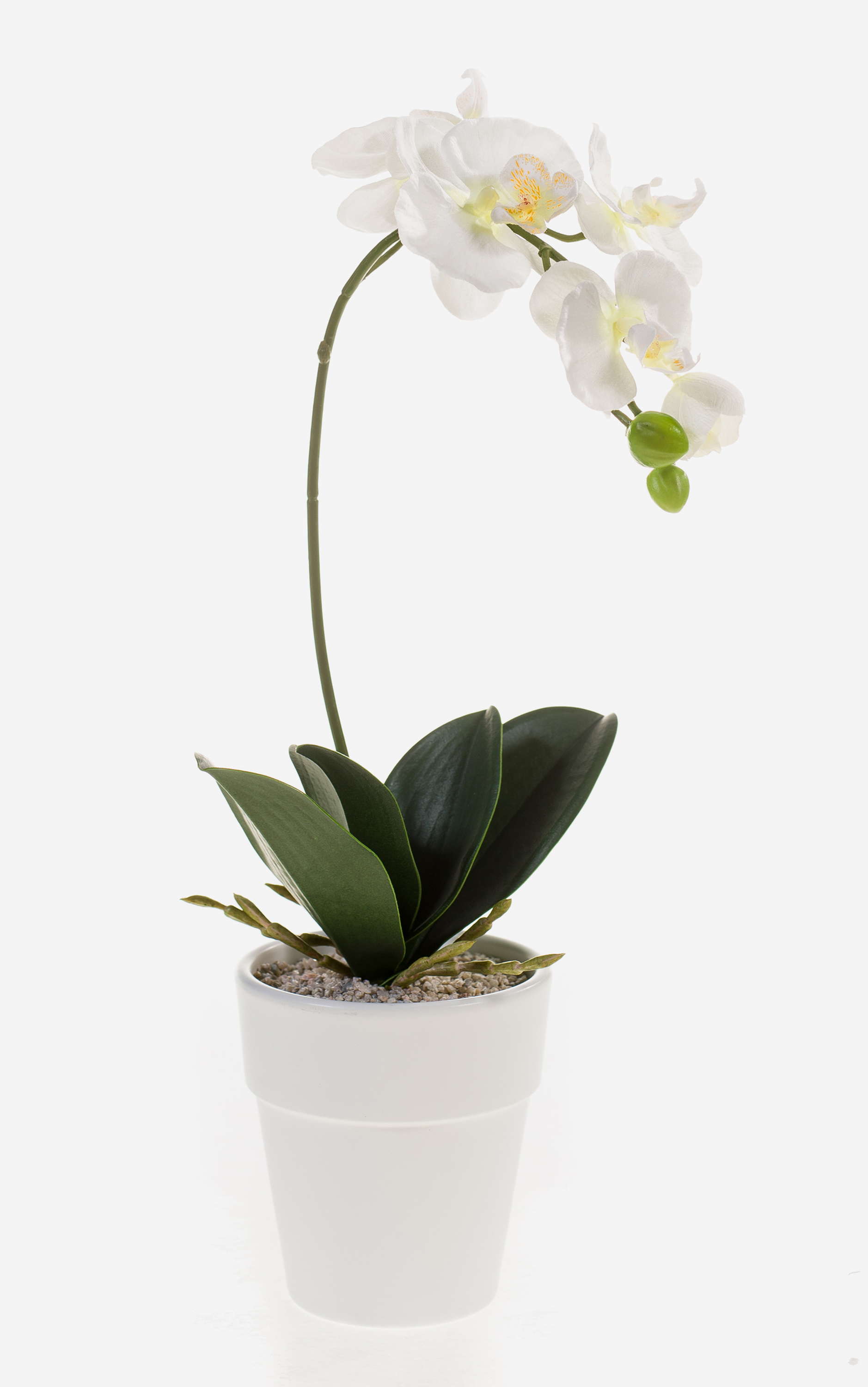 Orquídea phalaenopsis artificial ISIS, maceta de cerámica, blanco, 40cm