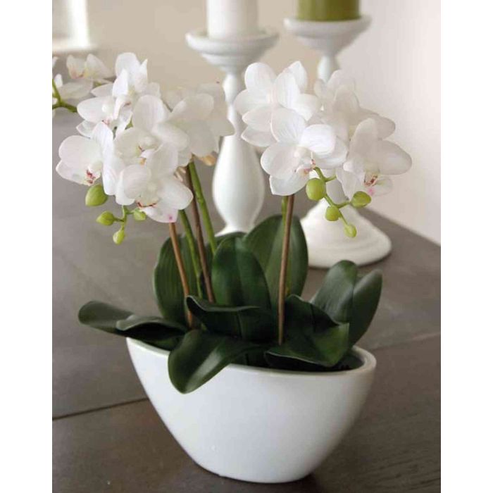 Orquídea Phalaenopsis artificial JASMIN en maceta de cerámica, blanco, 40cm