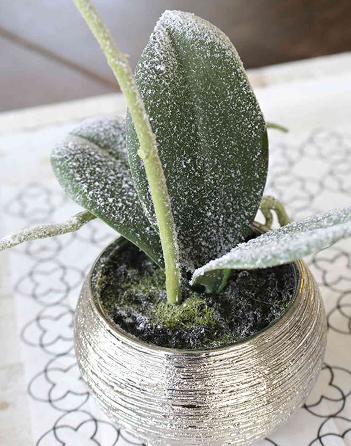 Orquídea Phalaenopsis artificial KAREN, maceta decorativa, con hielo, blanca, 35cm