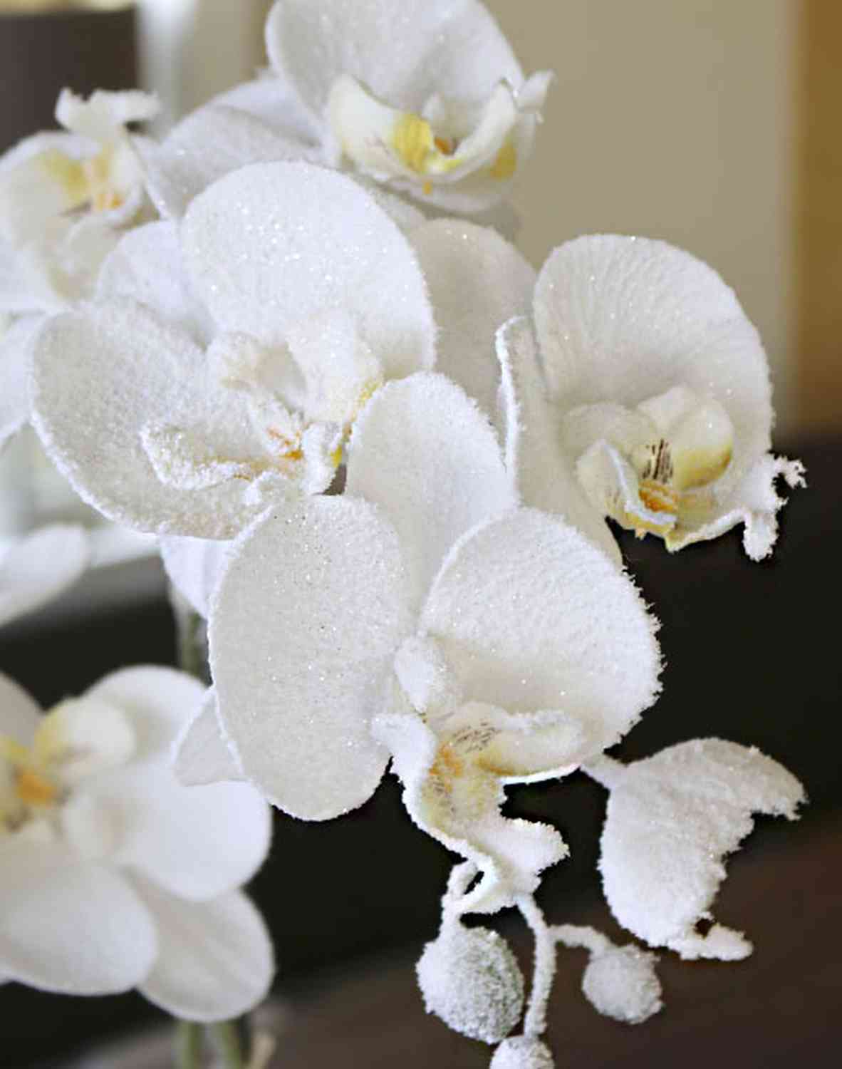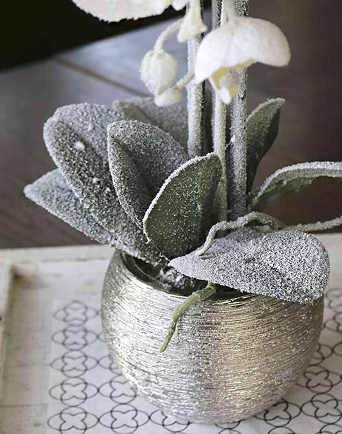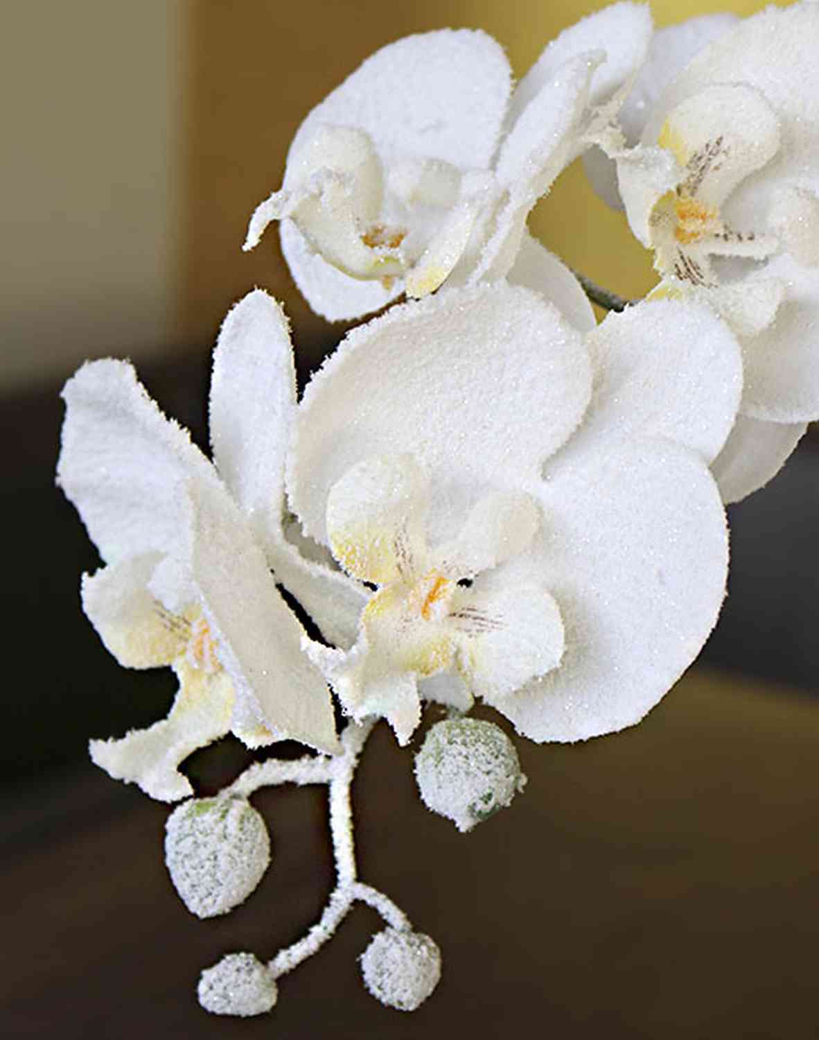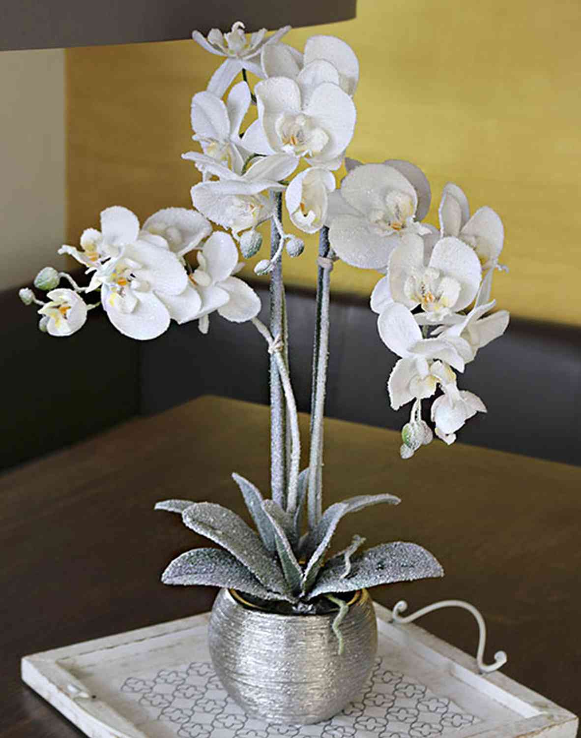 Orquídea Phalaenopsis artificial KAREN, maceta decorativa, con hielo, blanca, 60cm
