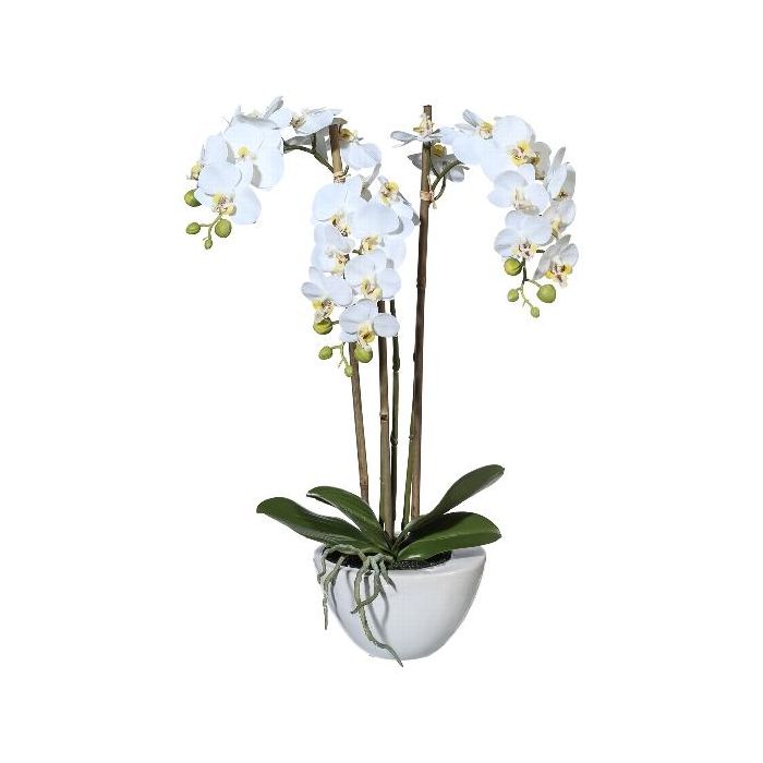 Orquídea Phalaenopsis artificial LARKEN en cuenco de cerámica, raíces, blanca, 50 cm