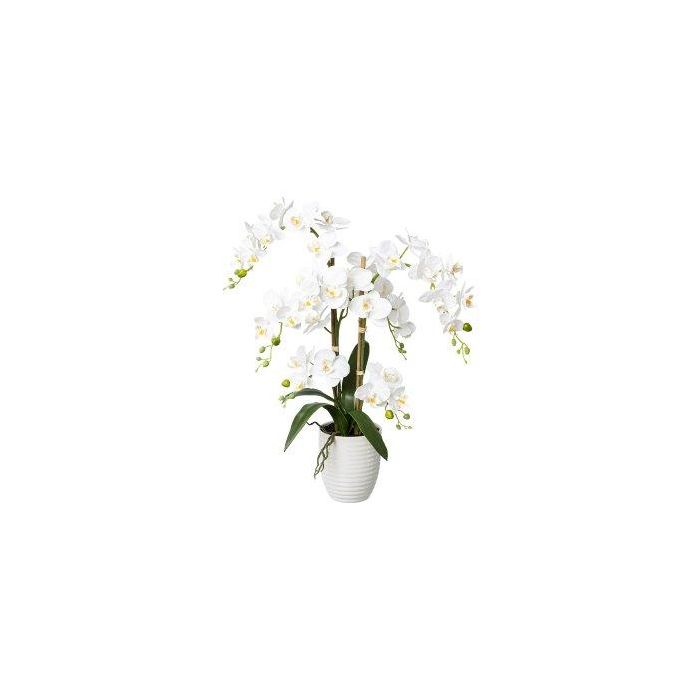 Orquídea Phalaenopsis artificial LUKREN en maceta de cerámica, raíces, blanca, 65 cm