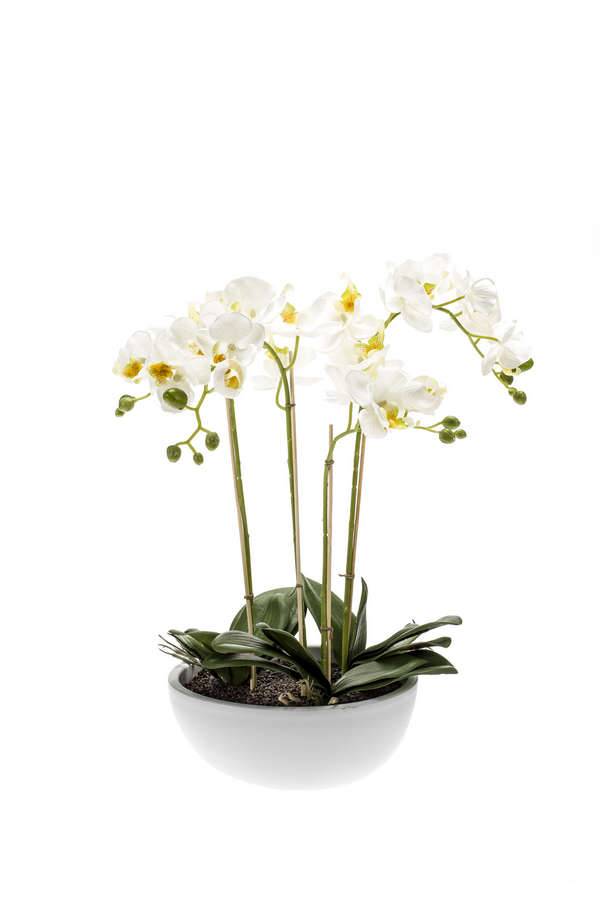 Orquídea phalaenopsis artificial MINA en maceta cerámica, blanco, 60cm