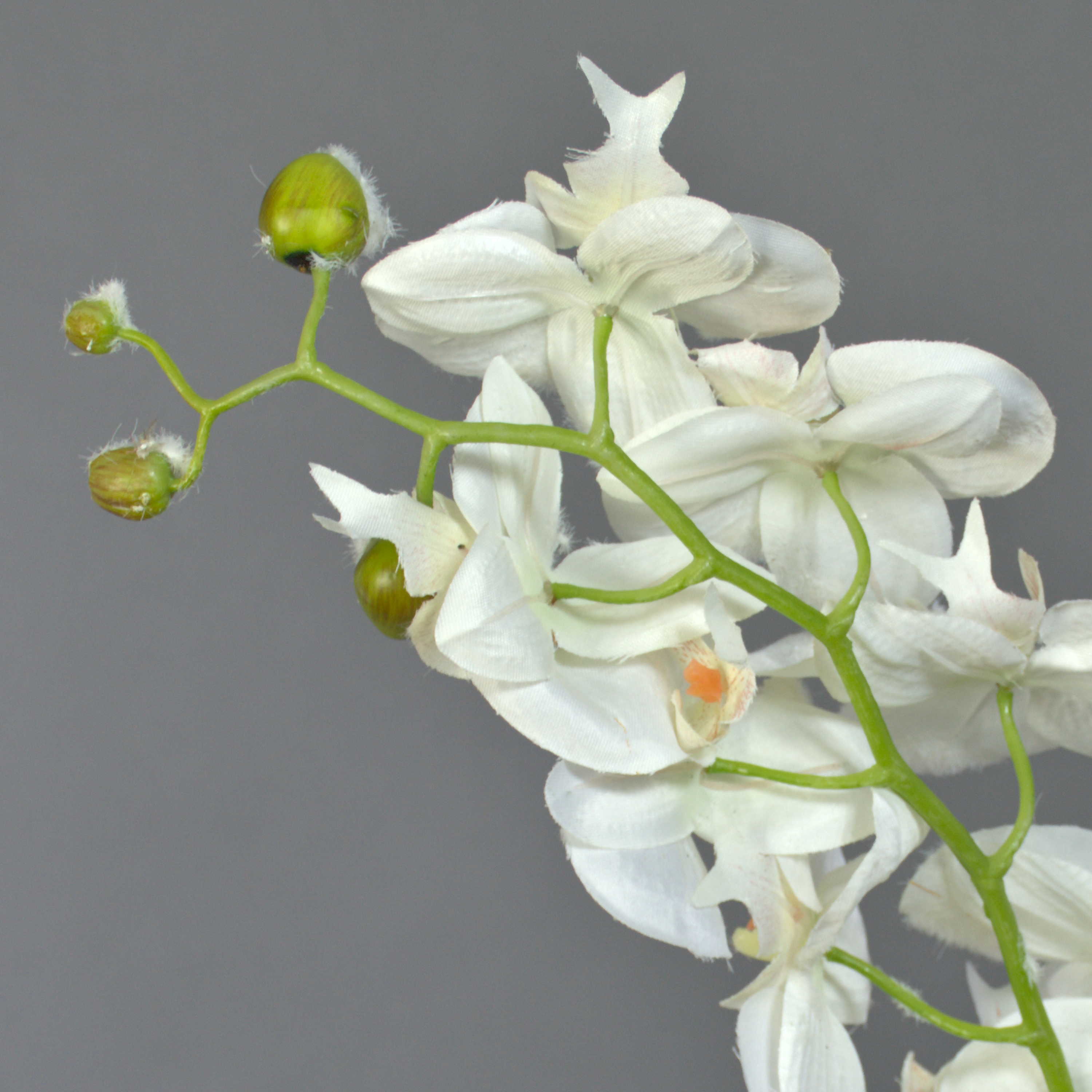 Rama de orquídea sintética NALANI con una longitud total de unos 80 cm en color blanco.