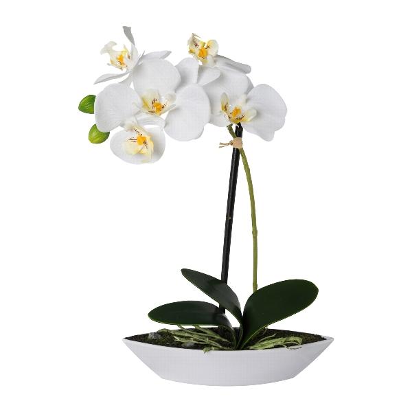 Orquídea Phalaenopsis artificial ORWAN, bandeja decorativa, raíces, blanco, 30 cm