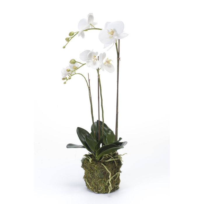 Orquídea Phalaenopsis artificial PABLA lecho musgo, blanco, 70cm, Ø7-12cm