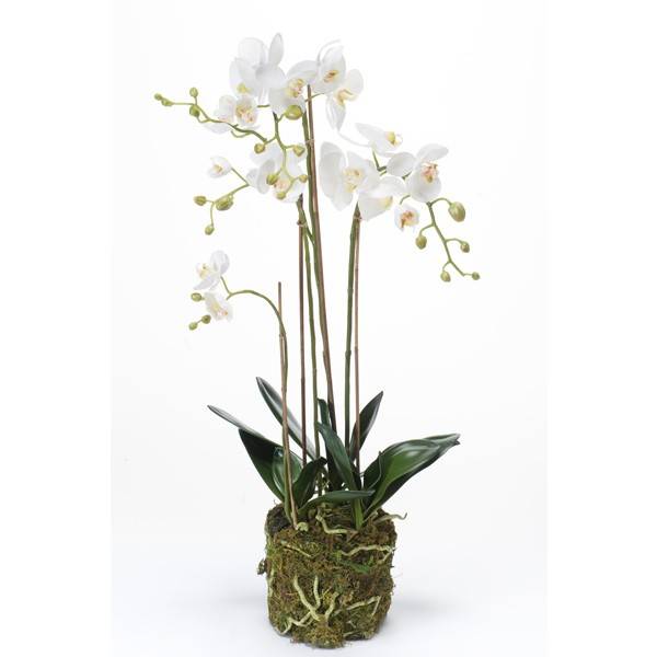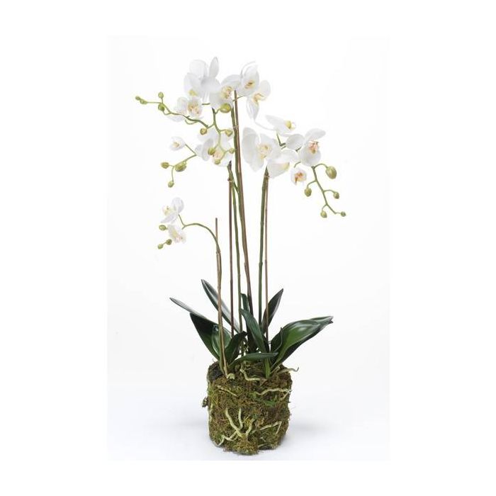 Orquídea Phalaenopsis artificial PABLA lecho musgo, blanco, 80cm, Ø8-11cm
