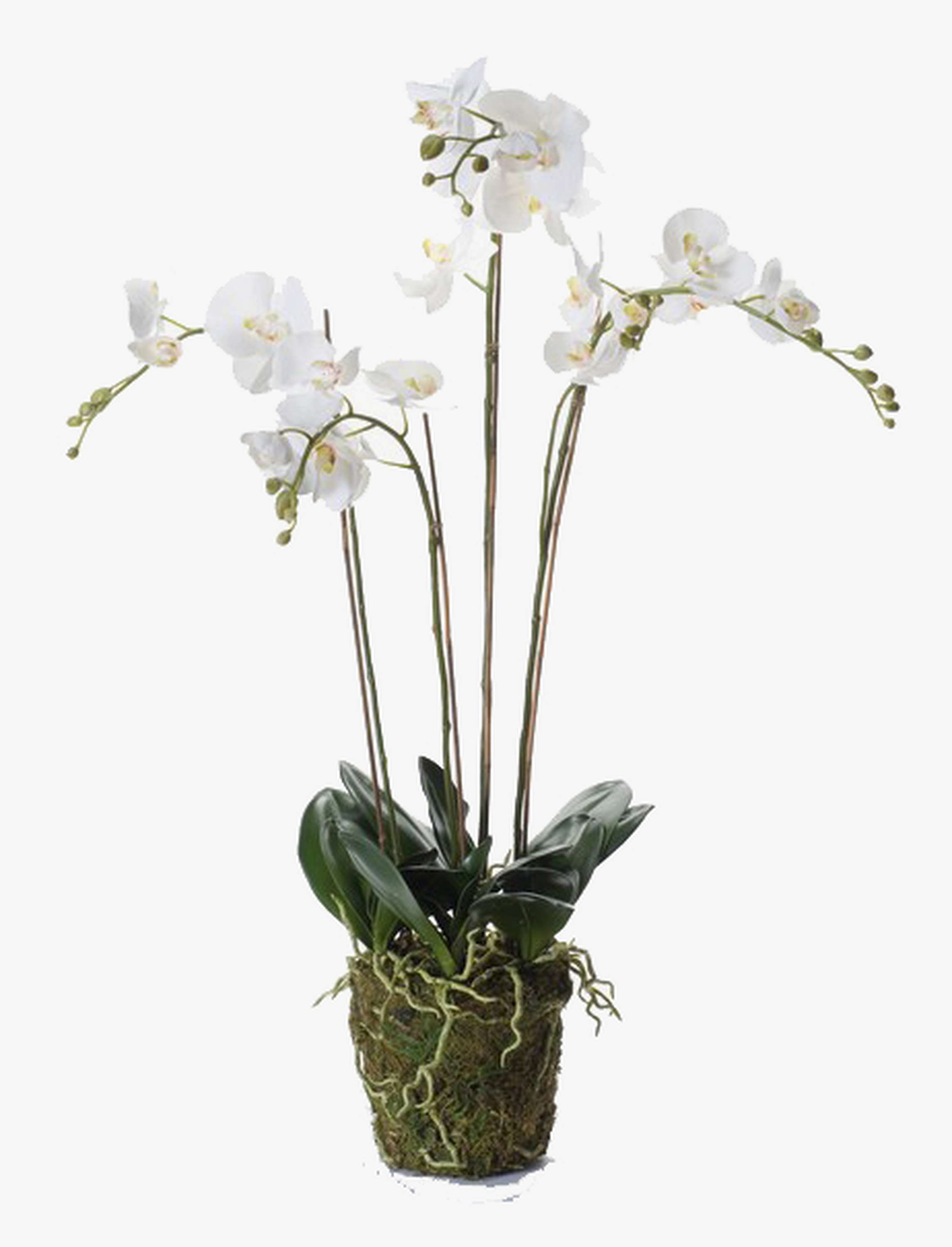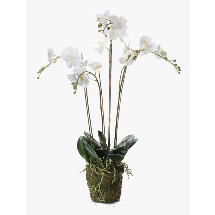 Orquídea Phalaenopsis artificial PABLA lecho musgo, blanco, 90cm, Ø10-13cm