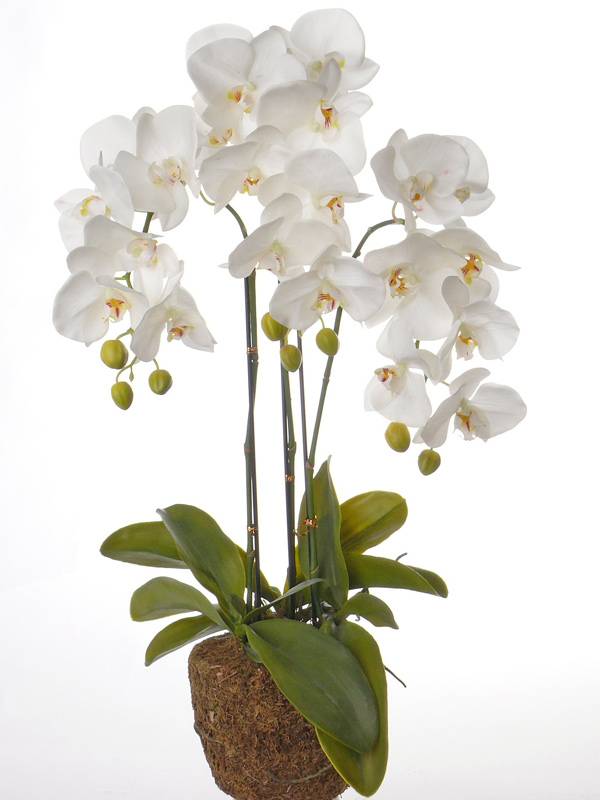 Orquídea Phalaenopsis artificial SATRIA tierra, blanco, 75cm, Ø7-8cm