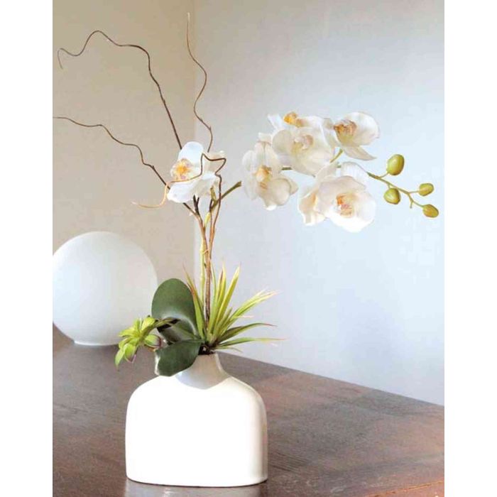Orquídea Phalaenopsis artificial TIALDA, suculentas, jarrón de cerámica, blanco, 50cm