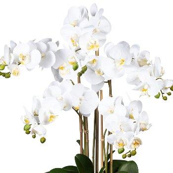 Orquídea Phalaenopsis artificial ZALBROK, jarrón decorativo blanco, raíces, blanco, 75 cm