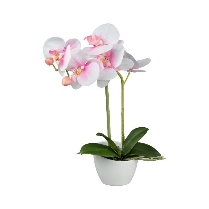 Orquídea Phalaenopsis de tela FUNTIF en maceta de melamina, raíces, rosa y blanco, 35 cm