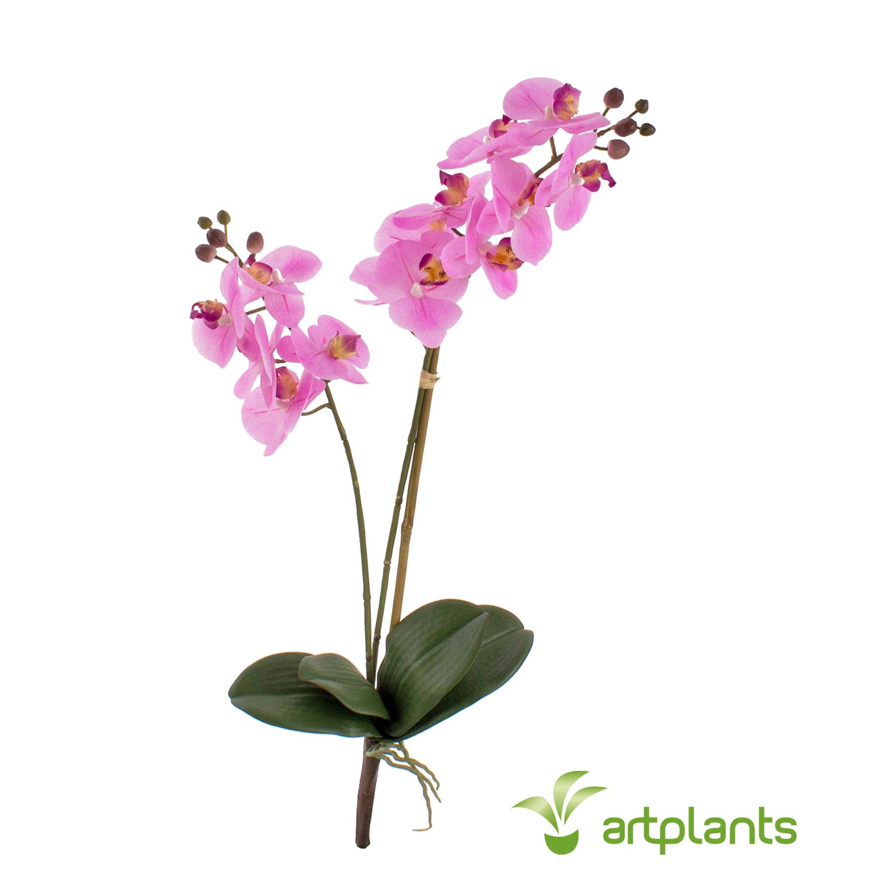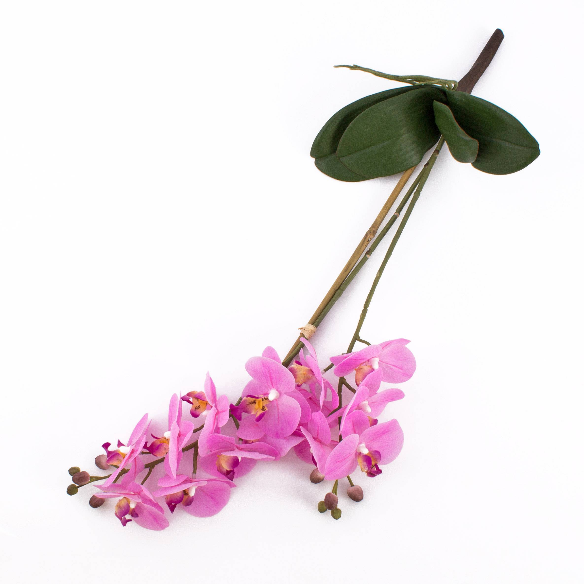 La orquídea artificial phalaenopsis CANDIDA con dos ramas en color verde y flores en color rosa es ideal para decoraciones en salas de estar, dormitorios o comedores.