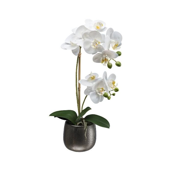 Orquídea Phalaenopsis textil MERMAY, maceta de cerámica, raíces, blanca, 50 cm