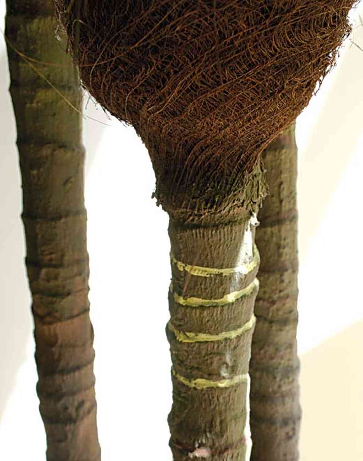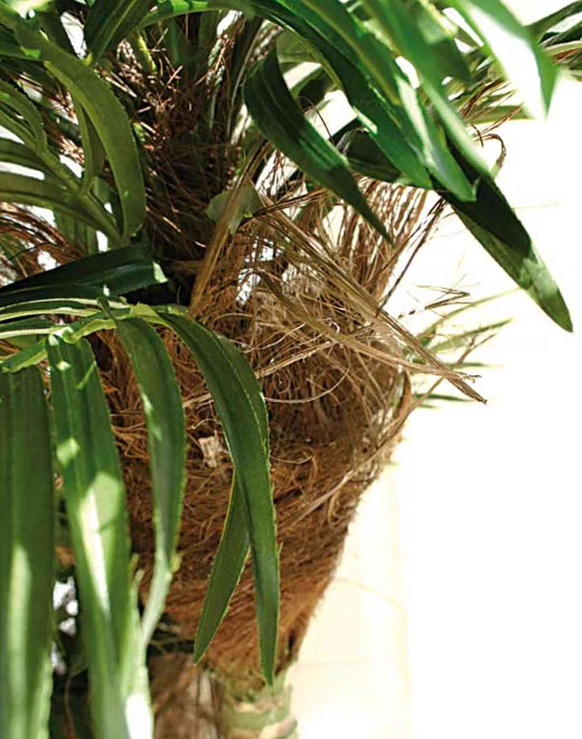 - Palmera de 3 troncos (entre los troncos y las hojas hay fibra de palmera que le otorga una apariencia real); con 1580 hojas textiles con un detallado acabado