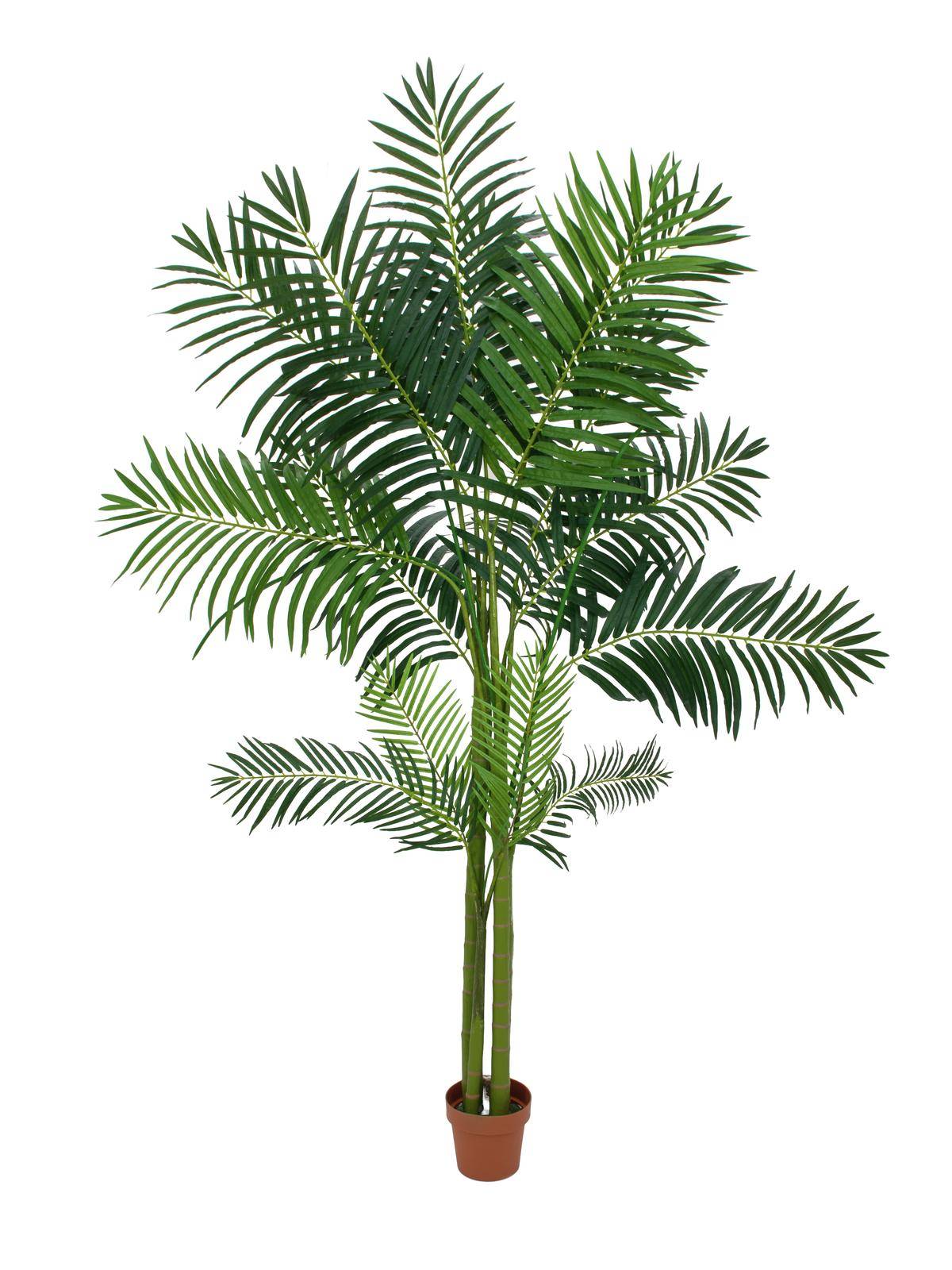 Palmera Areca (palma de betel) artificial resistente a la intemperie con 4 troncos, 1020 hojas y una altura total aproximada de 240 cm.