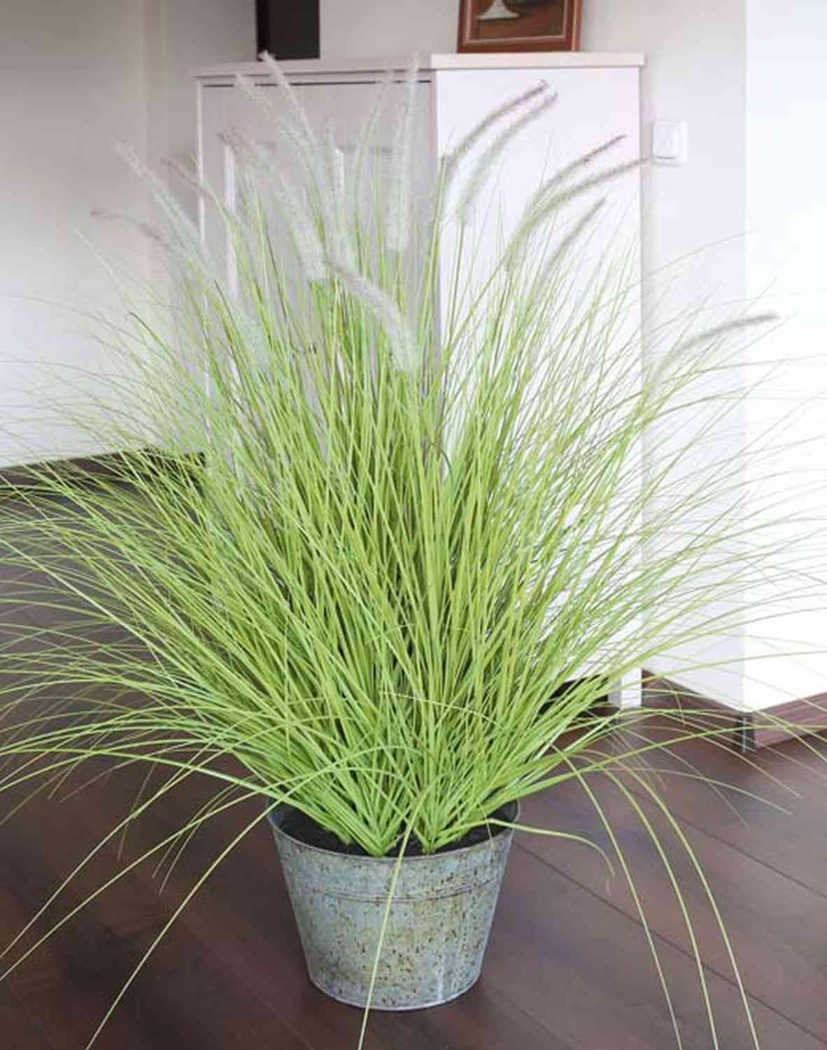Pennisetum artificial OVIDIO, panículas, maceta de zinc, verde, 115cm