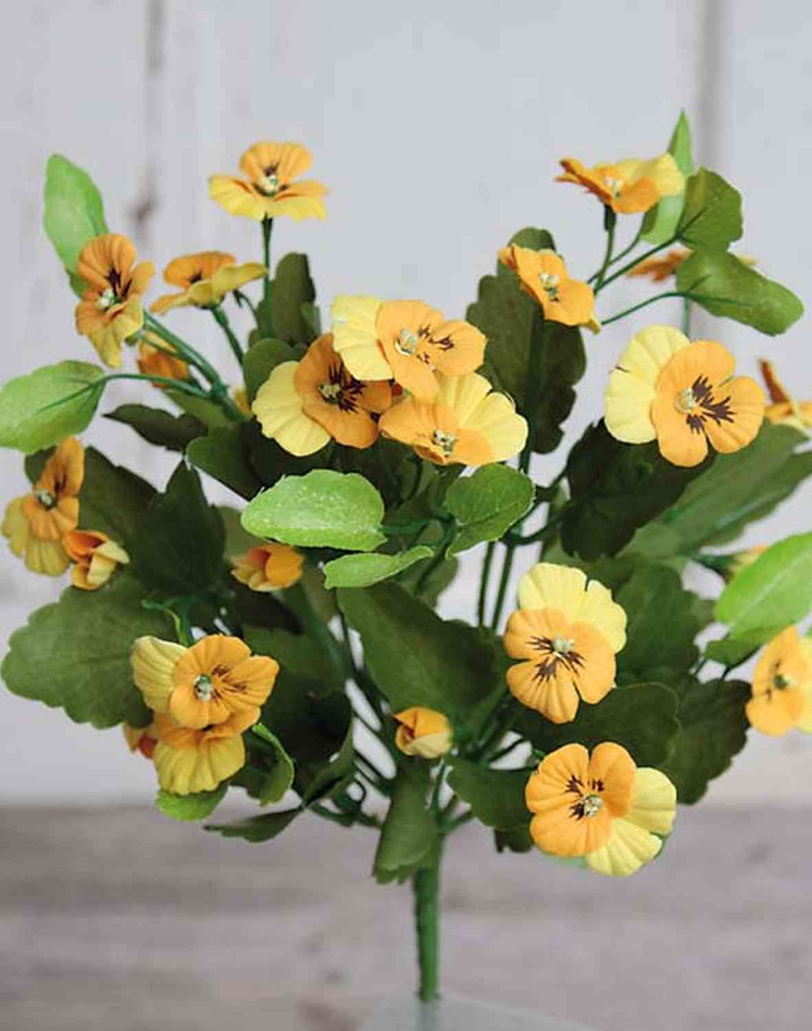 El arbusto decorativo de pensamientos DELJA de color naranja-amarillo posee una altura de 25 cm. La planta artificial posee una varilla de ajuste para su fácil fijación y decora así con facilidad cada habitación en su maceta.
