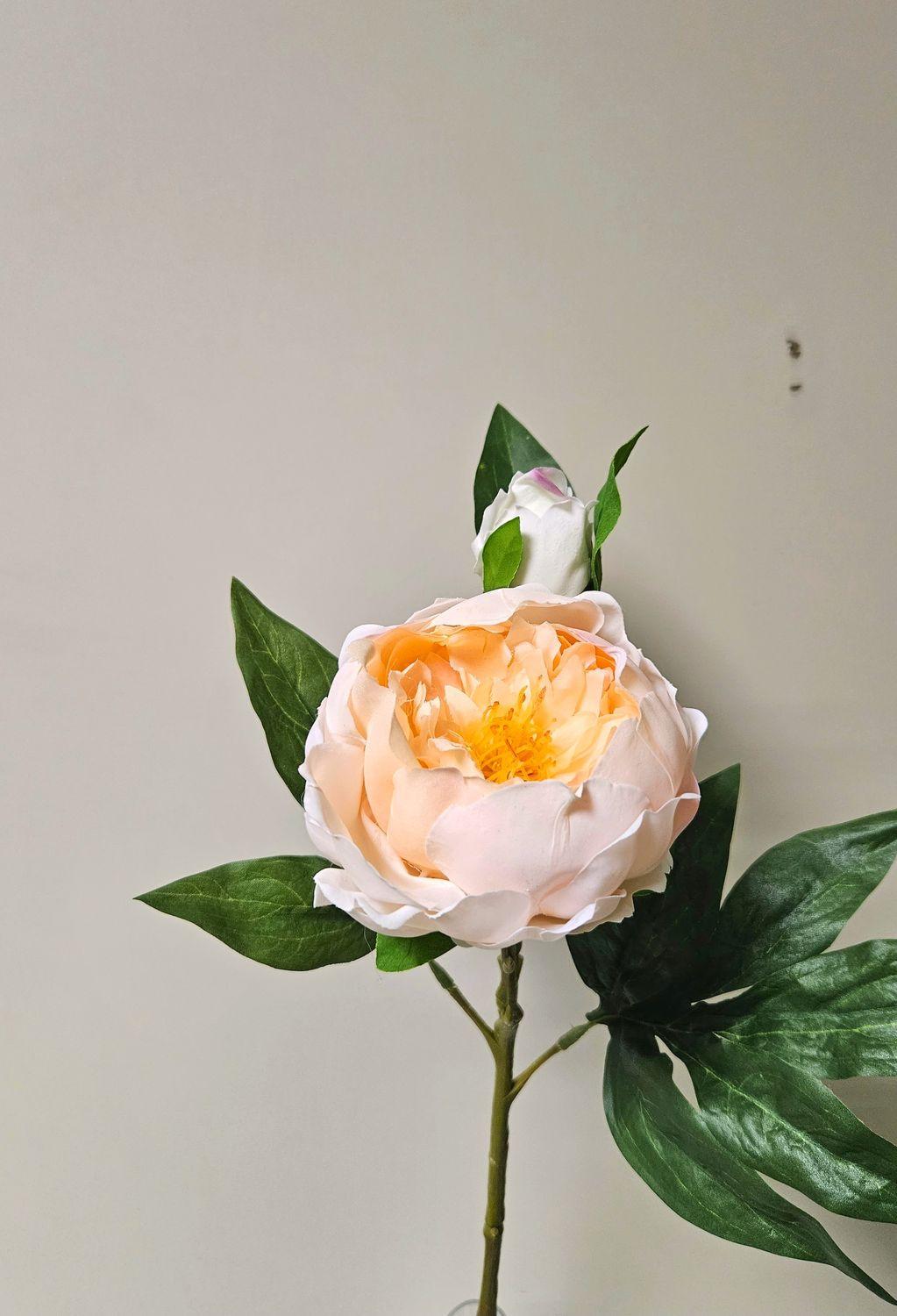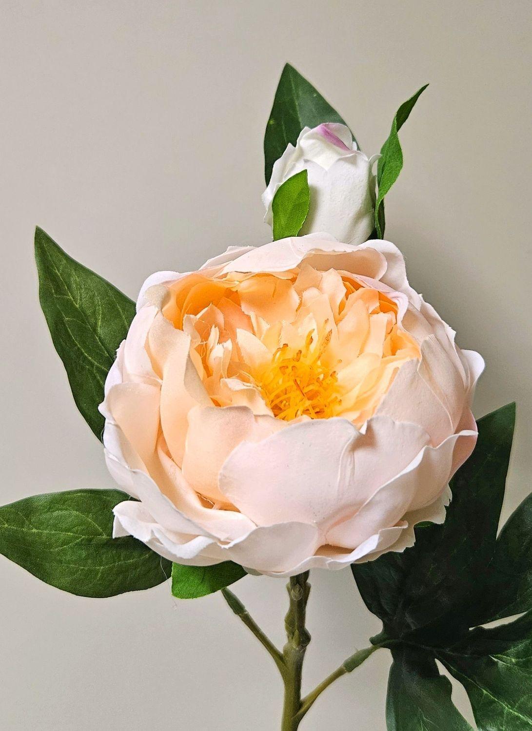 Peonía artificial FYRFAR, semiabierta, crema-albaricoque, 60 cm