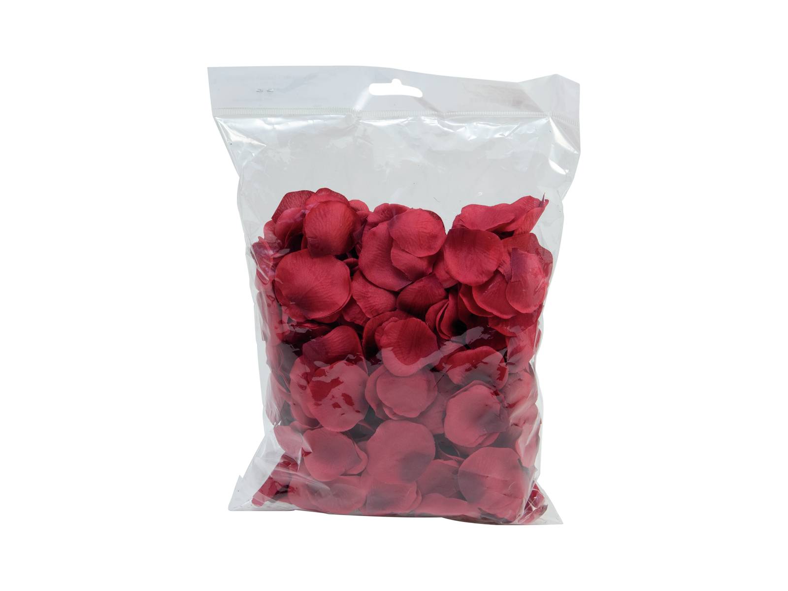 500 pétalos decorativos de rosa MEGGIE de color rojo con degradado de color natural. La decoración de fibra textil se suministra en una bolsa de celofán