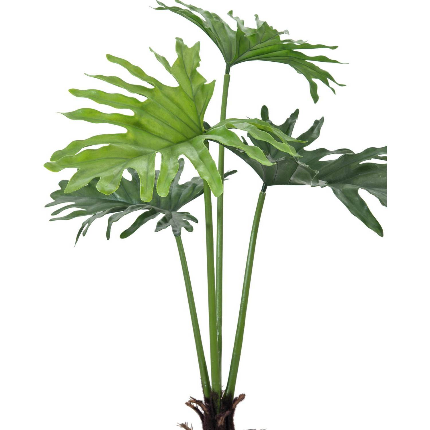 Philodendron artificial de hoja dividida con un grueso tronco y hojas anchas de color verdes. La planta artificial posee una altura aproximada de 120 cm.
