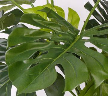 La Monstera sintética ARELIUS impresiona con diferentes hojas grandes en diferentes tonos de verde. Con una altura de aprox. 85 cm y las aprox. 15 hojas ofrece muchas posibilidades de decoración.