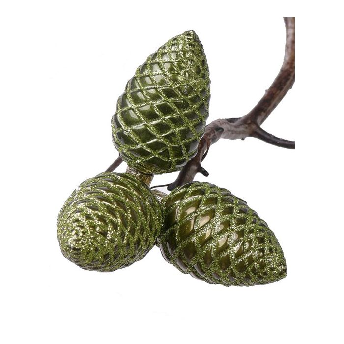 Piñas de abeto verdes ZENTA, adornos para el árbol de Navidad, 3 piezas, 11cm