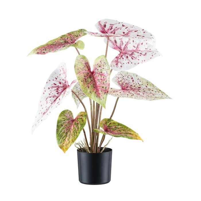 Planta artificial Caladium STAHER, raíces, rojo-blanco-verde claro, 55 cm