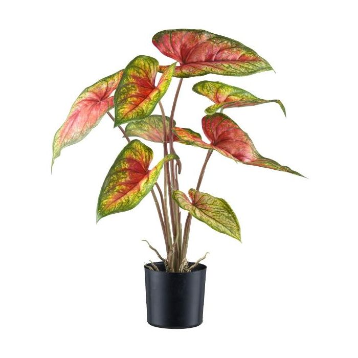 Planta artificial Caladium STAHER, raíces, rojo-verde, 55 cm