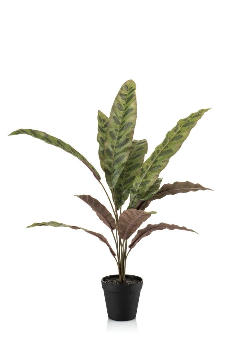 Planta artificial Calathea Makoyana WIDO en maceta decorativa, verde-burdeos, 60 cm