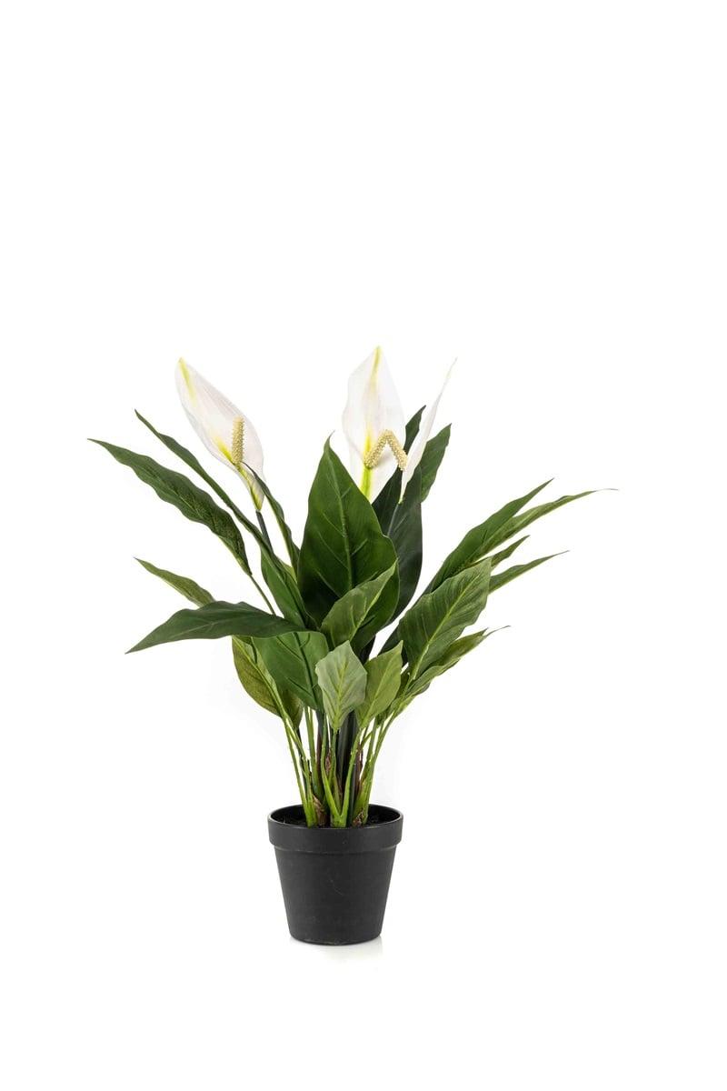 Planta artificial de una hoja RANIESO, maceta decorativa, flores, blanca, 55 cm