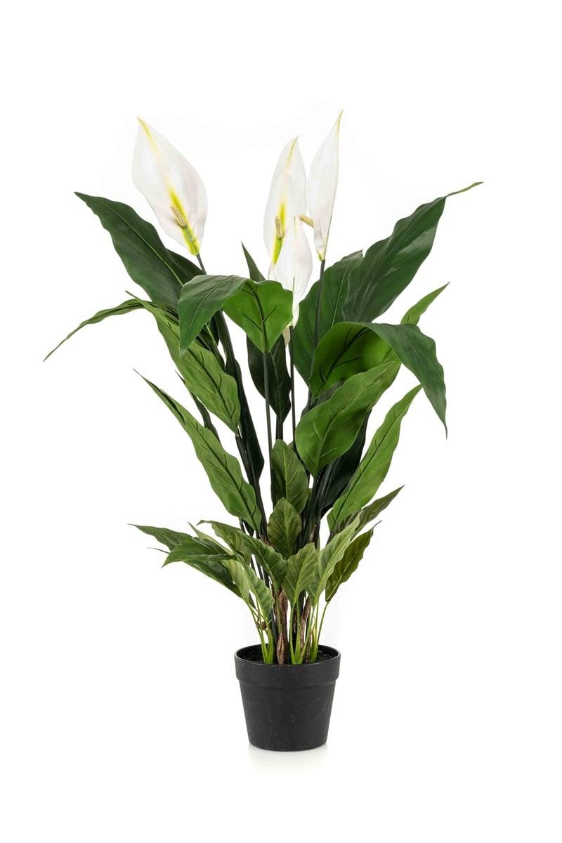 Planta artificial de una hoja RANIESO, maceta decorativa, flores, blanco, 90 cm