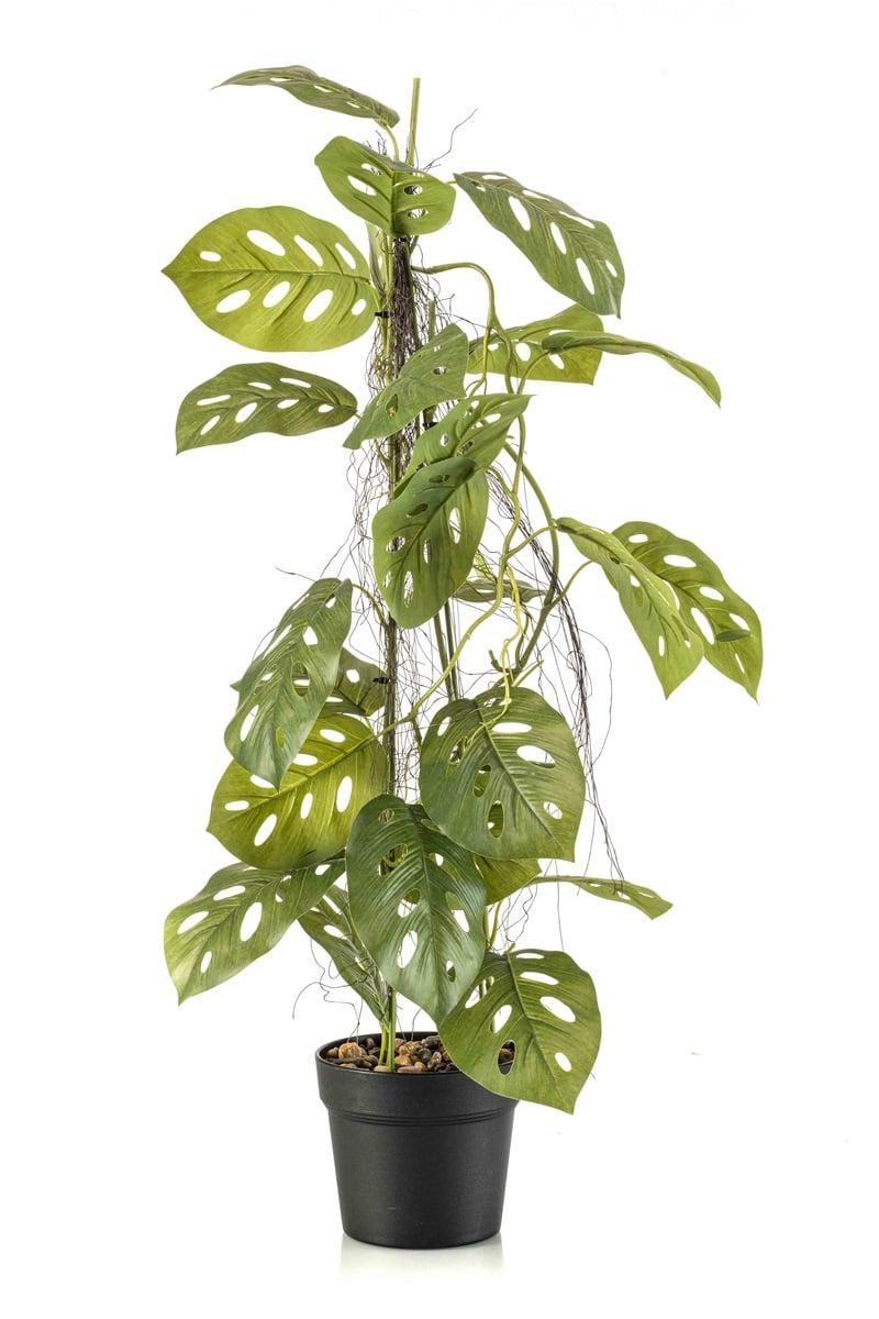 Planta artificial filodendro monstera adansonii BRINOL, maceta decorativa, raíces aéreas, 80 cm