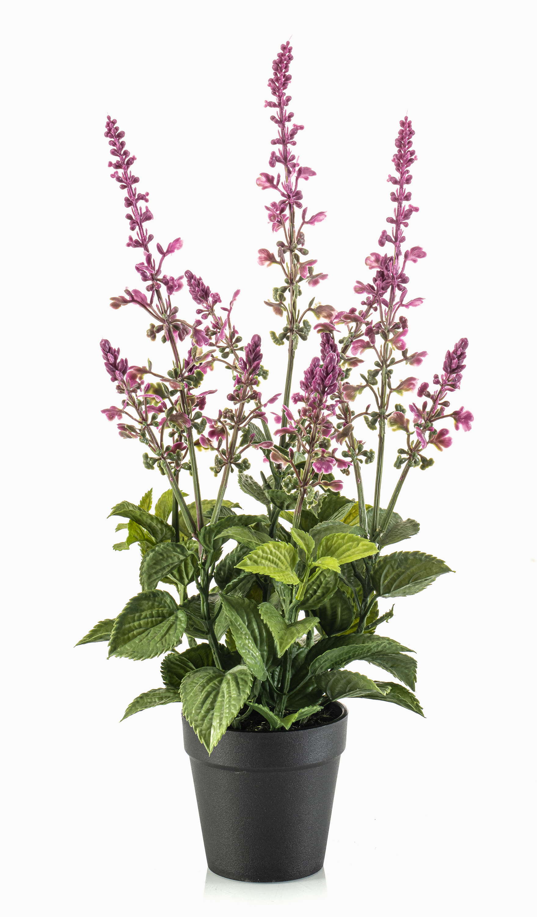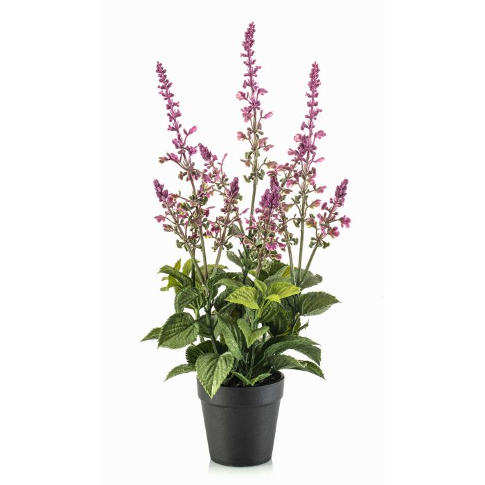 Planta artificial salvia SWORTA en maceta decorativa, flores, malva, 45 cm