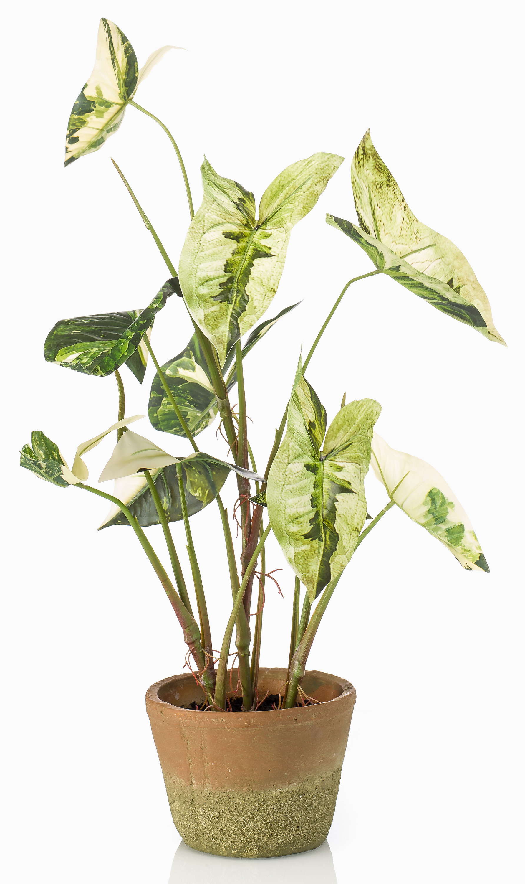 Planta artificial Syngonium YOMREL en maceta de terracota, verde y blanco, 60 cm