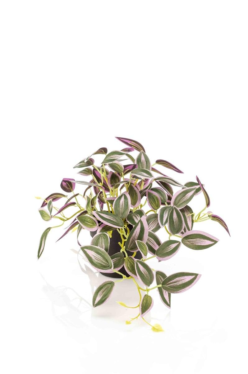 Planta artificial Tradescantia zebrina DIHALLU en maceta decorativa, verde-lila, 19 cm