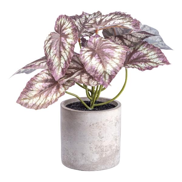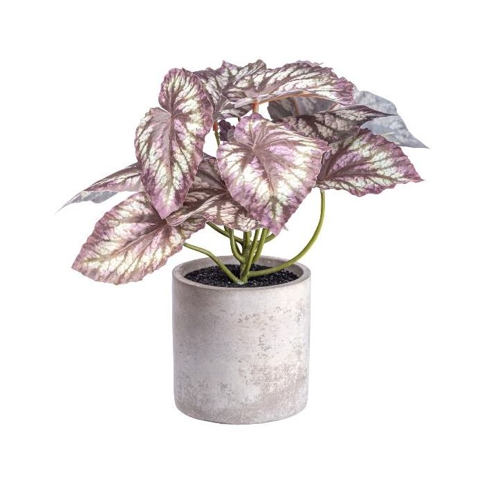 Planta decorativa Begonia de hoja grande GRUHIL en maceta de cemento, verde-lila, 22 cm