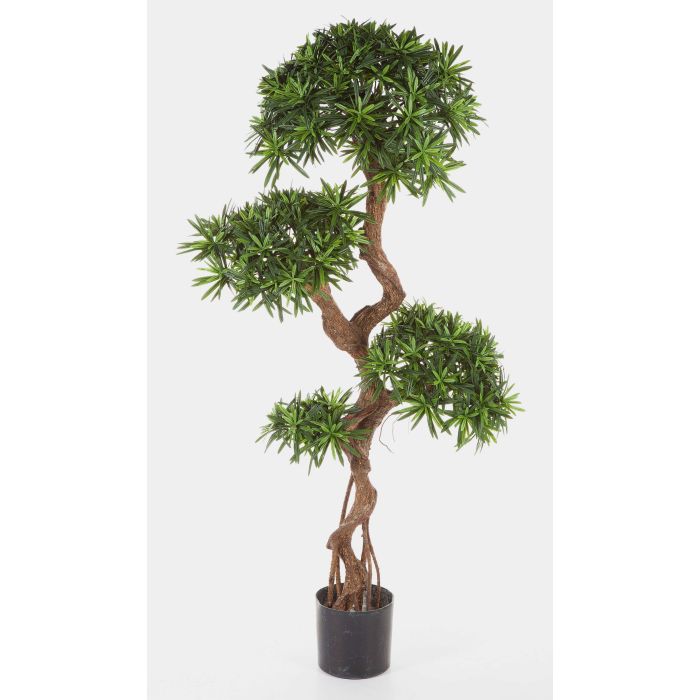Decorativo Podocarpus artificial con tronco en forma de espiral y cerca de 5800 hojas de textil de alta calidad. El árbol tiene una altura aproximada de 160 cm.