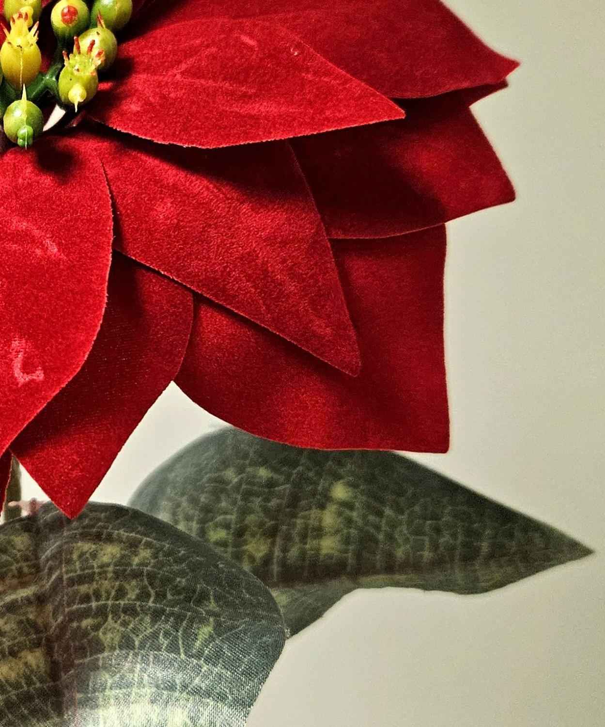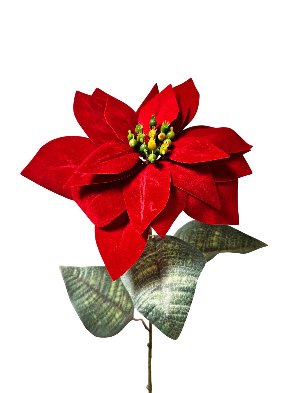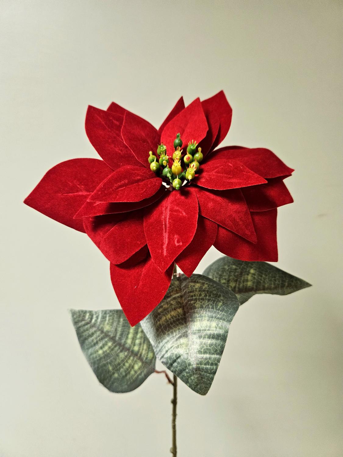 Poinsettia artificial de terciopelo LIBASSE, roja oscuro, 65 cm