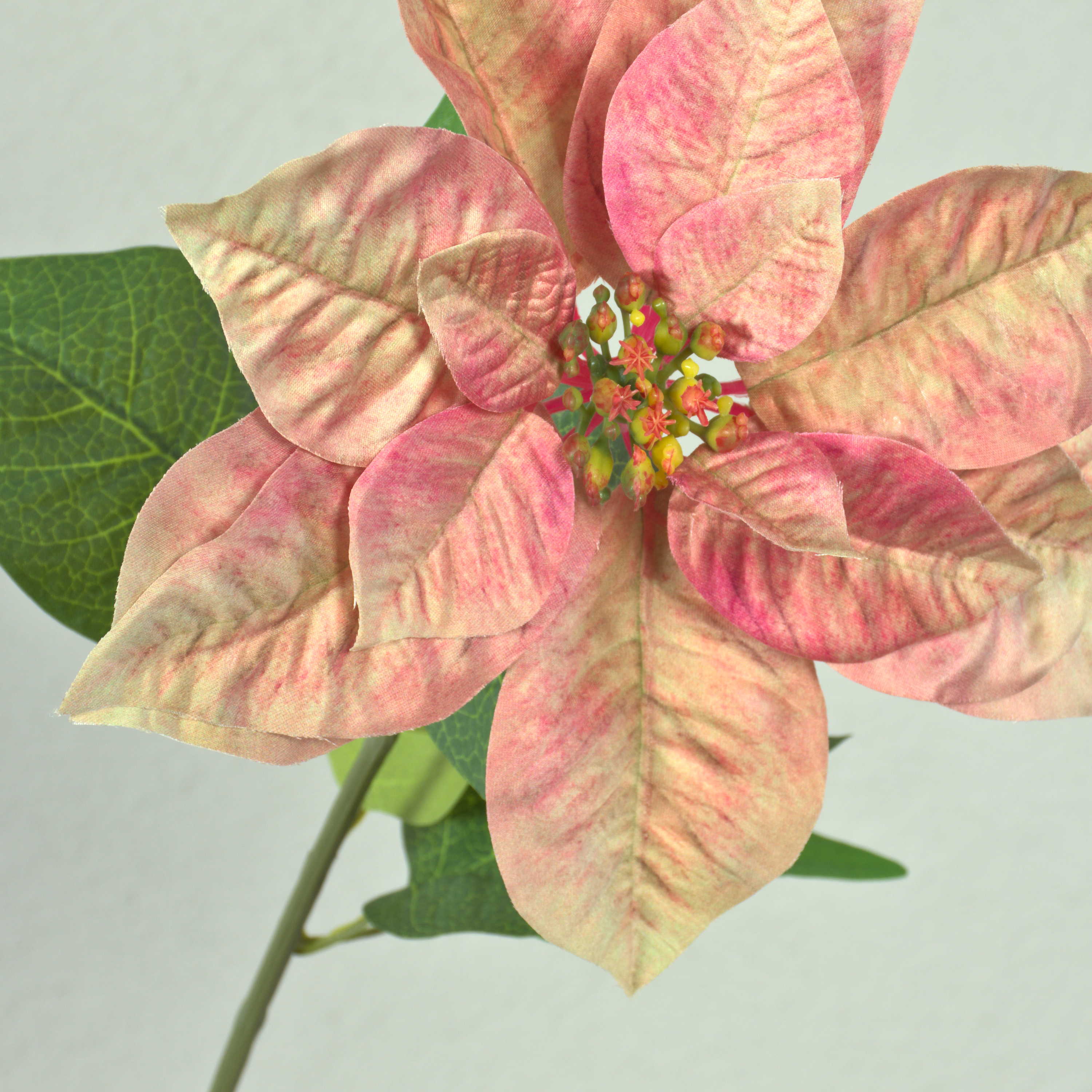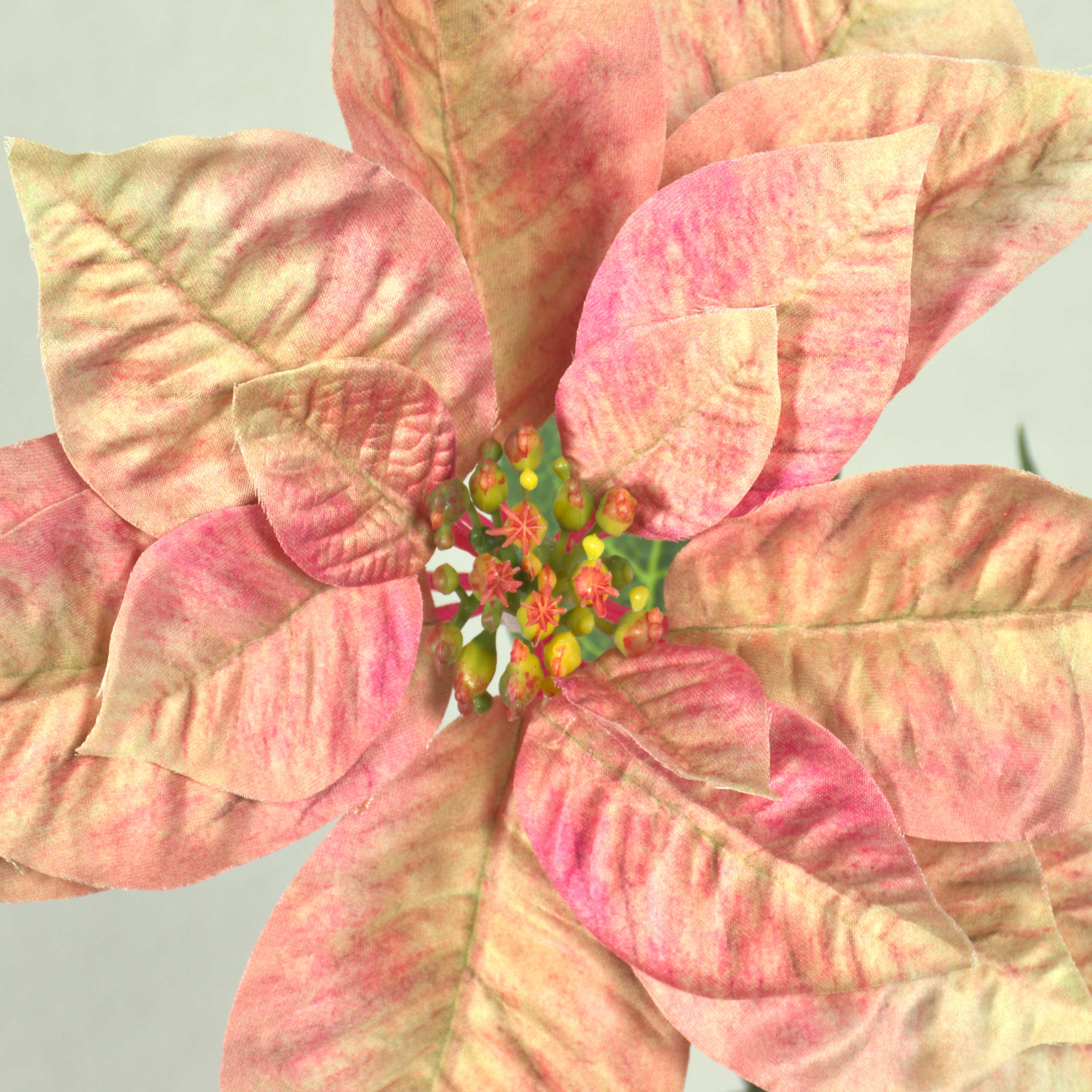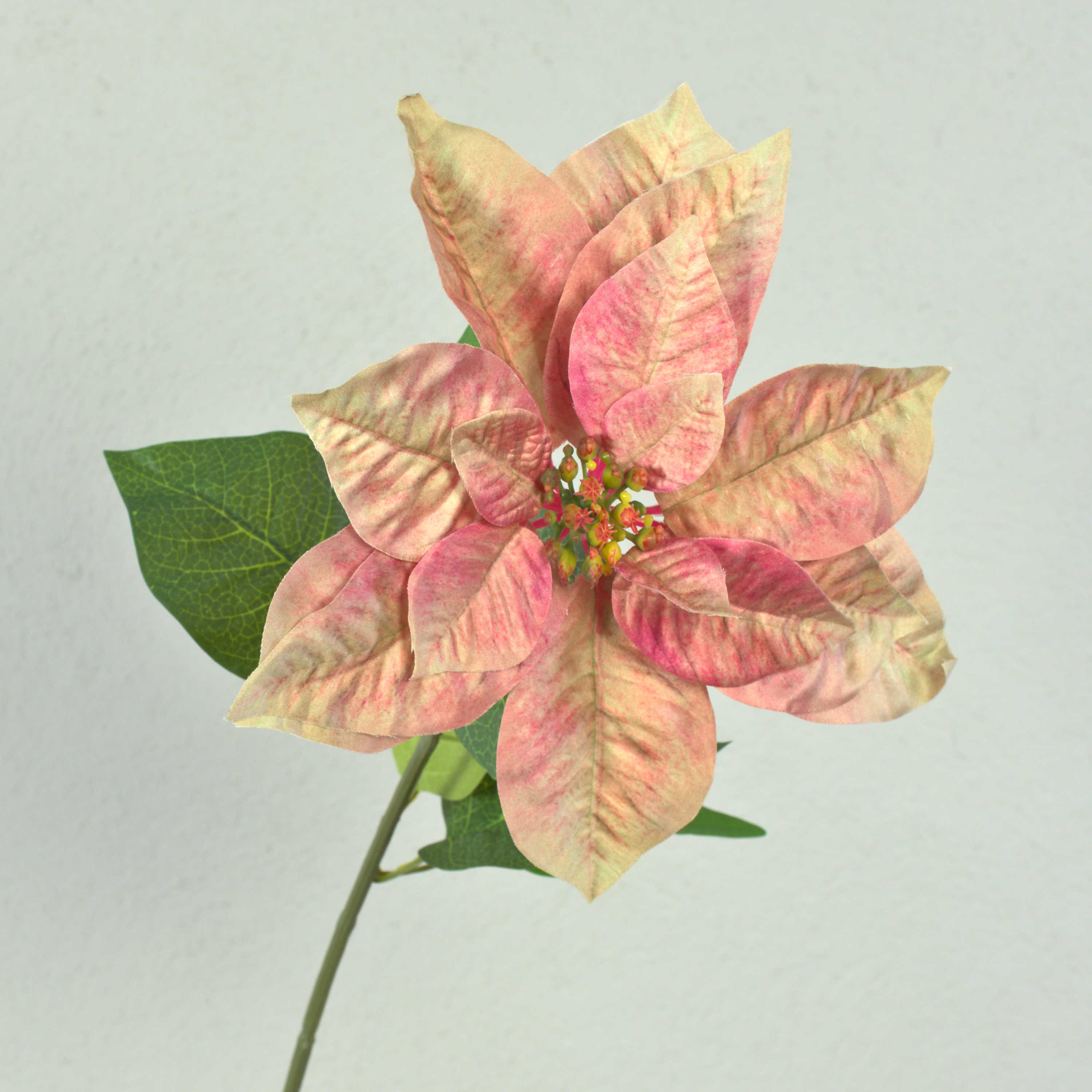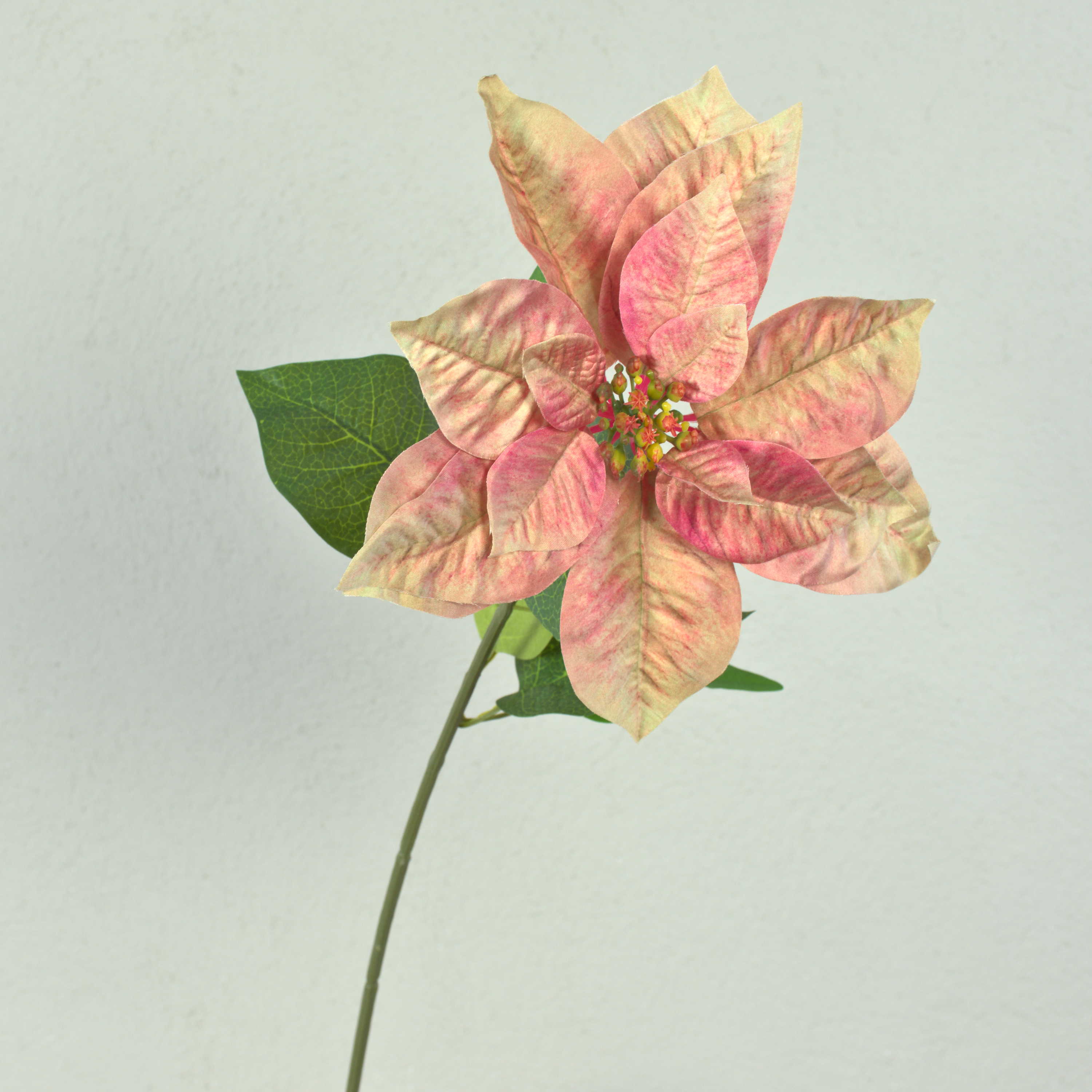 Poinsettia artificial de terciopelo LIBASSE, rosa crema, 65 cm