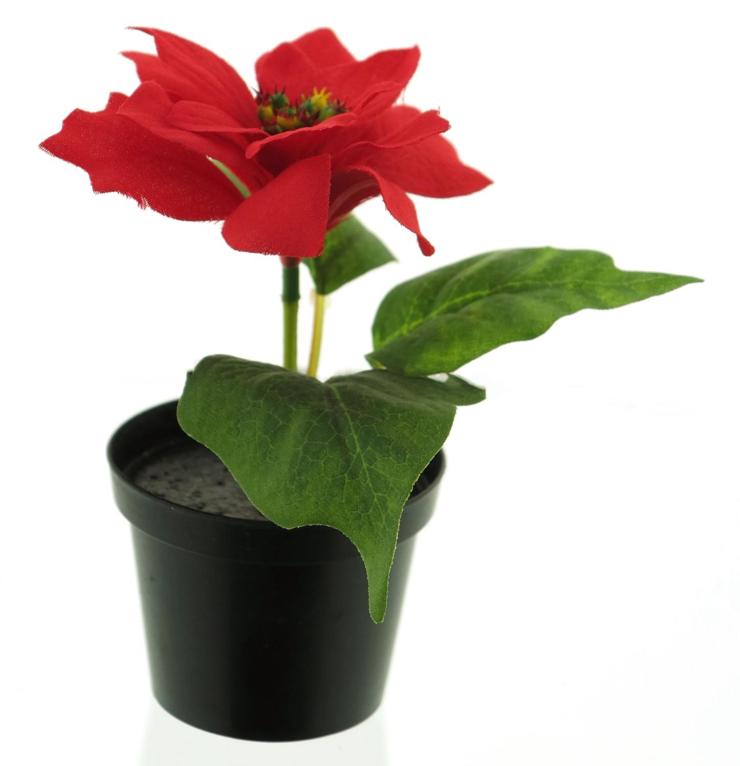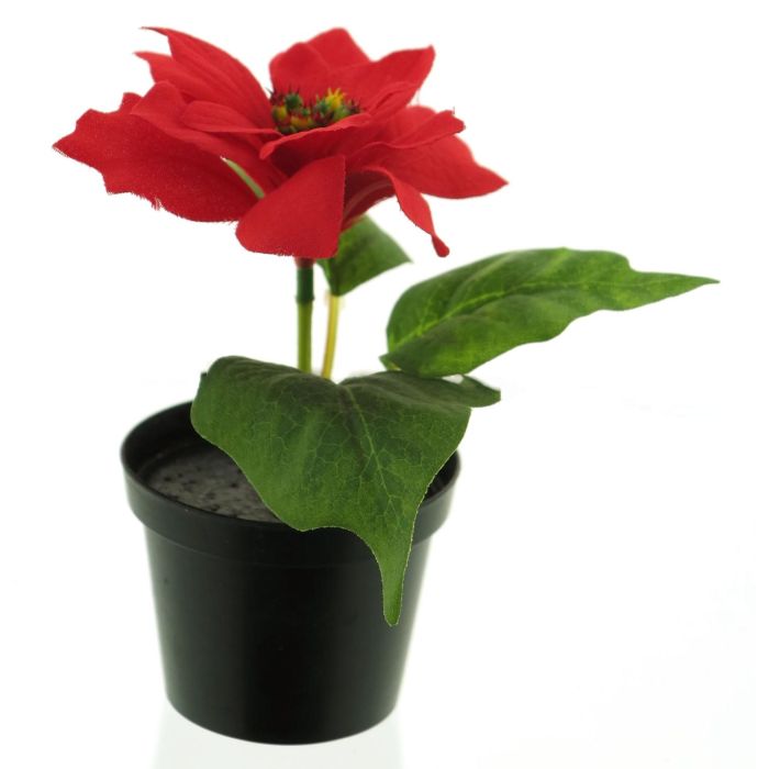 Poinsettia artificial NUORU en maceta decorativa, roja, 15cm