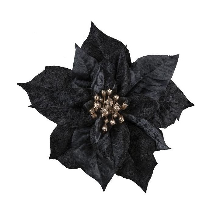 Poinsettia de terciopelo SINFE, negra, Ø 18 cm