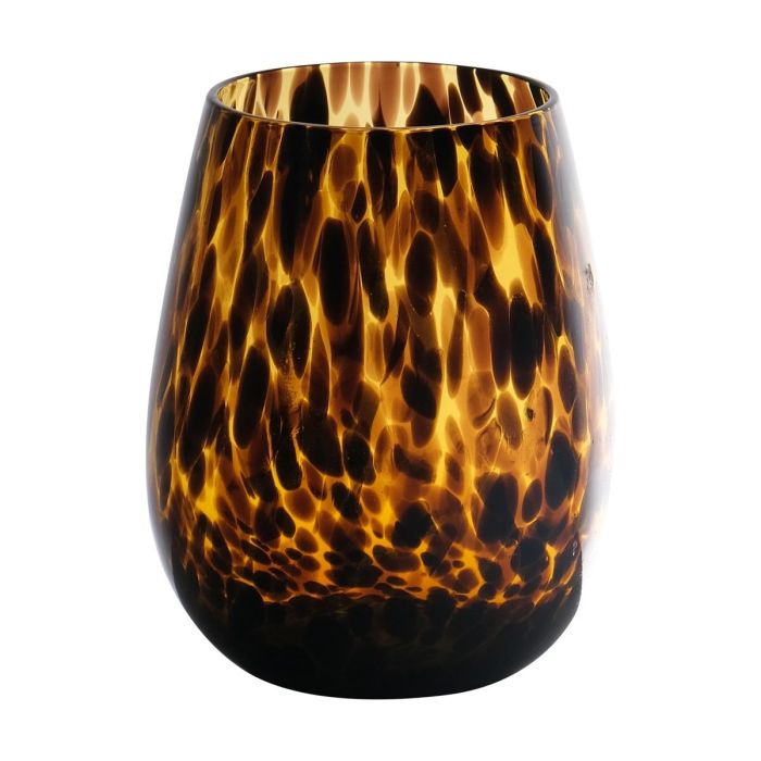 Portavelas abombado RUSSELL, diseño de leopardo, marrón-transparente, 12cm, Ø9cm