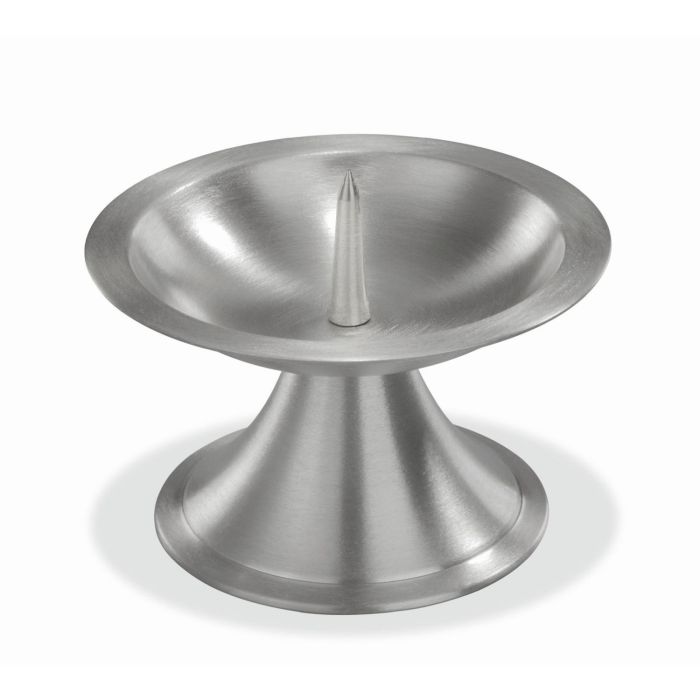 Portavelas de latón OLIVERIO con pincho, para velas Ø7-8cm, niquelado, cepillado mate, plata, 6,5cm, Ø11cm