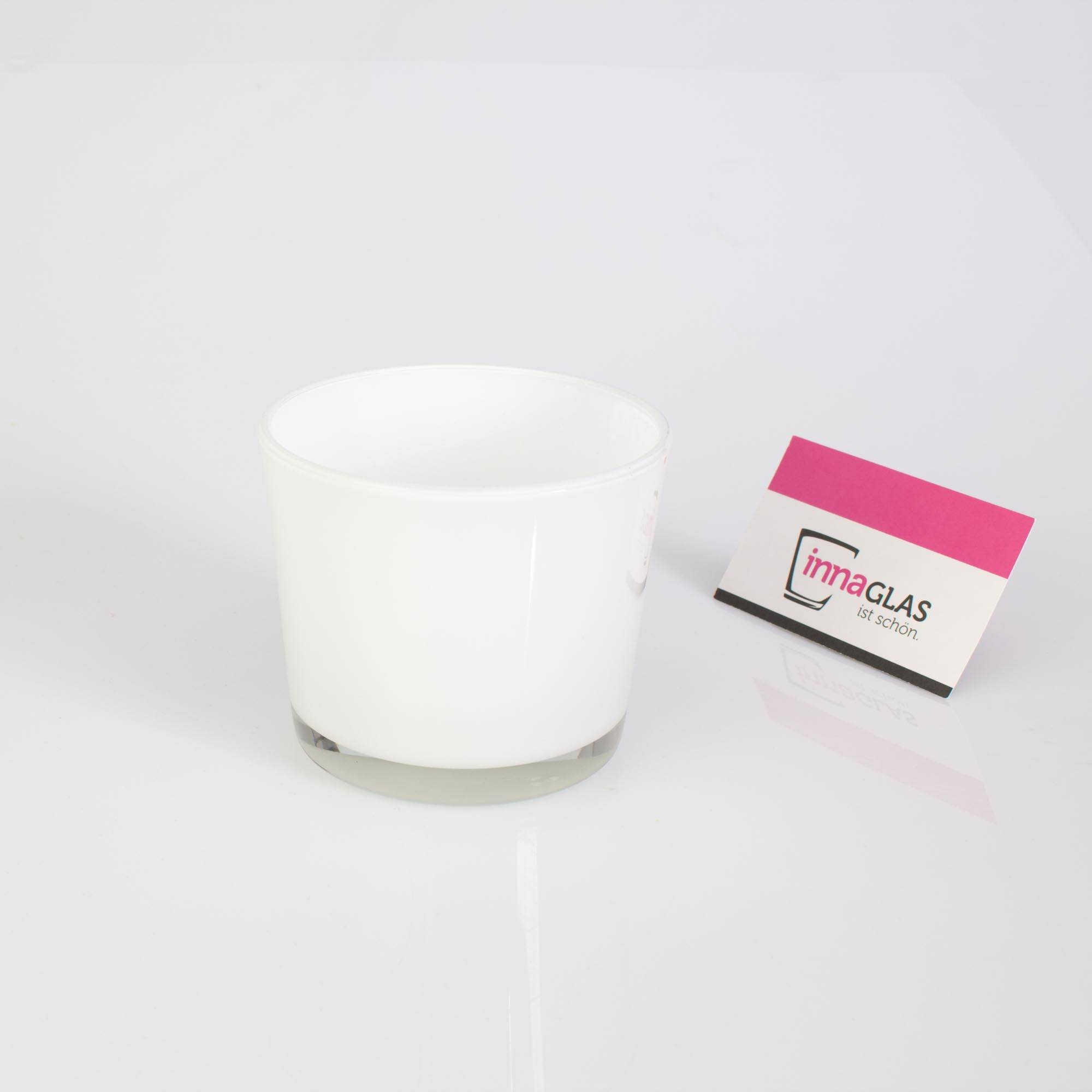 Portavelas grande ALENA, vidrio, blanco, 8,5cm, Ø10cm