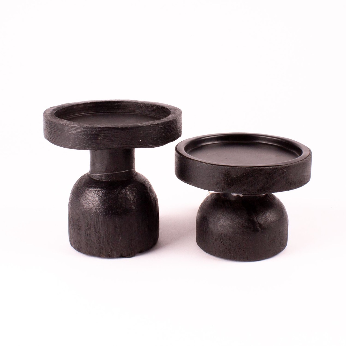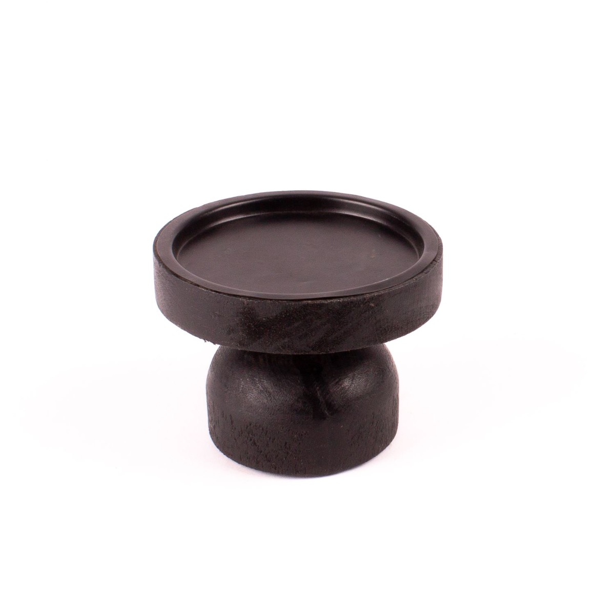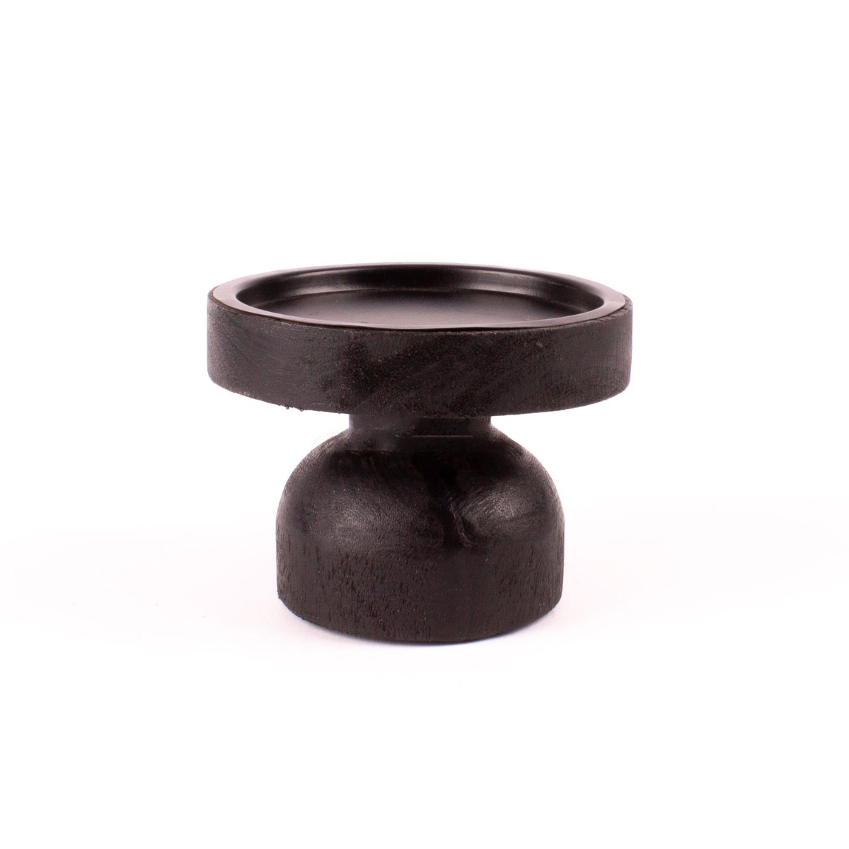 Portavelas MIMARIS de madera, con pie, negro, 9 cm, Ø 12 cm