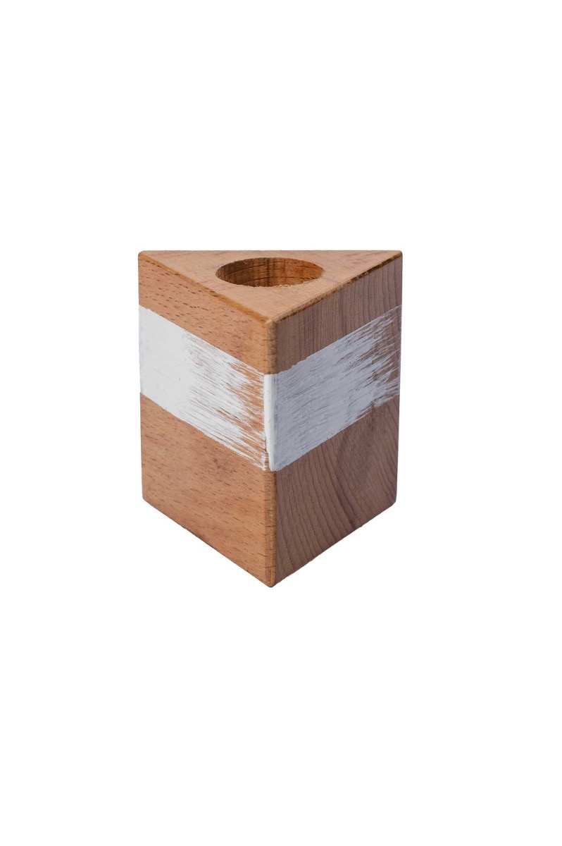 Portavelas triangular de madera KARLINA para velas de palo, blanco-natural, 6x6x6cm