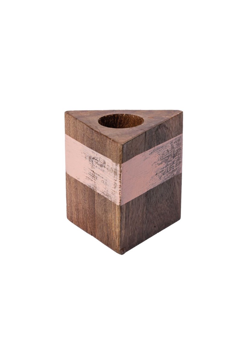 Portavelas triangular de madera KARLINA para velas de palo, natural-salmón, 6x6x6cm